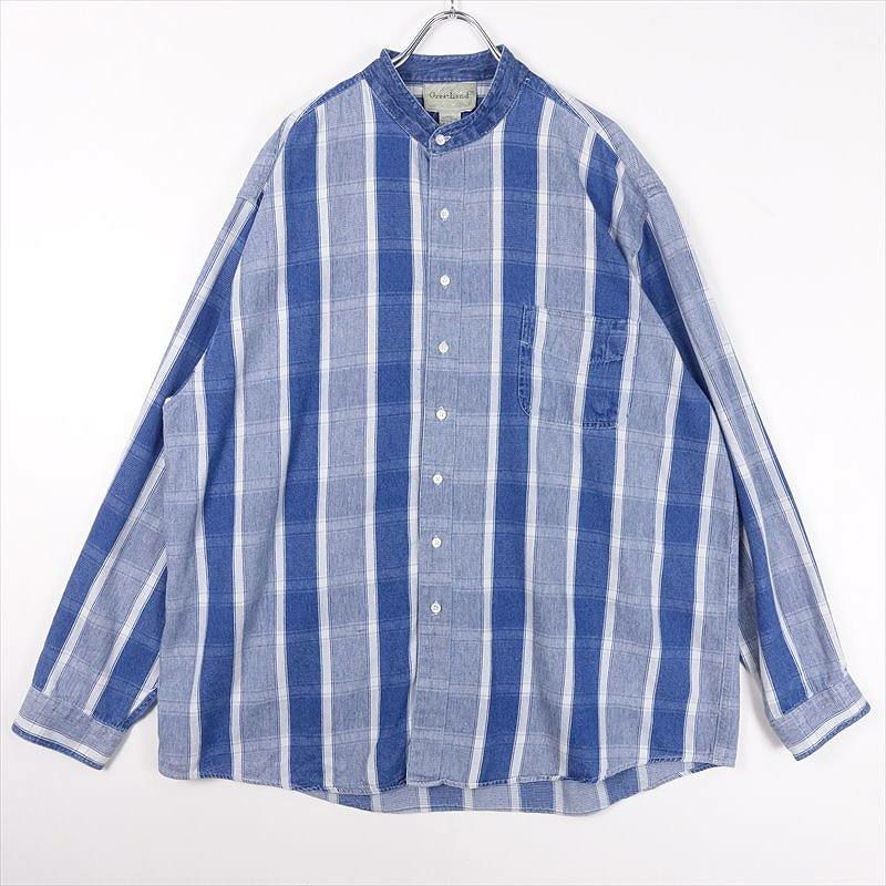 古着 Great Land ノーカラー デニム 長袖シャツ