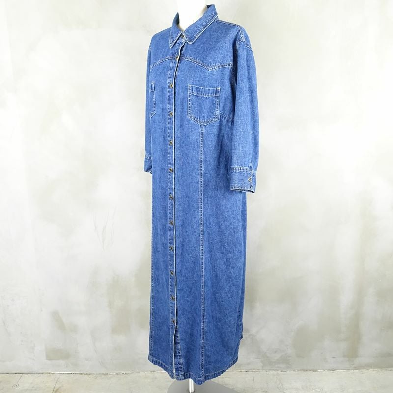 古着 7部袖 デニム 長袖ワンピース