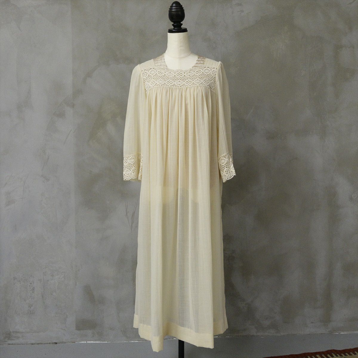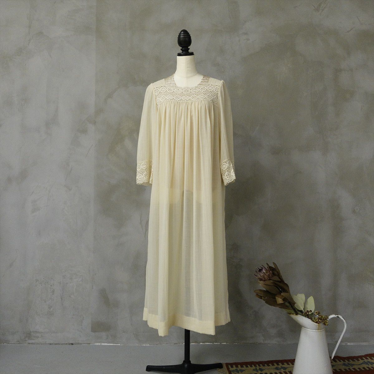 古着 70s クロシェ編み ギャザーワンピース
