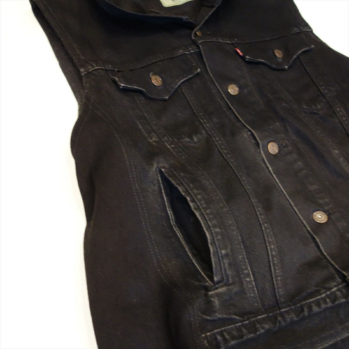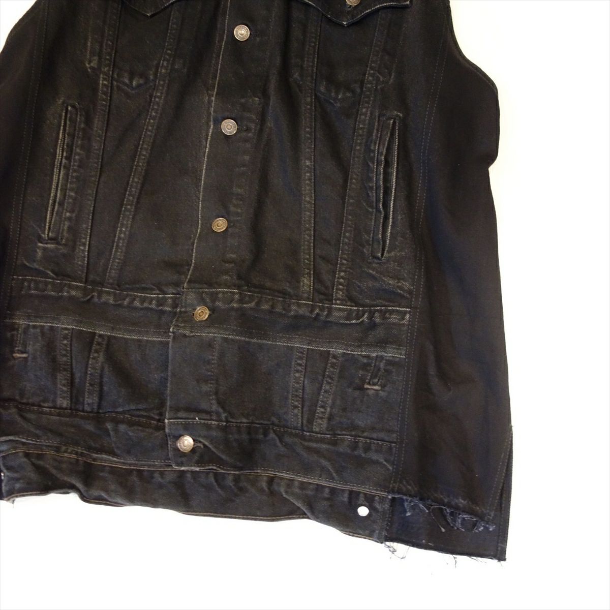 他の画像を見る Loose Threads Vest BLK 販売価格 ¥ 26,180 税込 在庫切れ Levi'sのデニムパンツを素材として製作しております。緩やかなVネックとなり、インナーを選ばない1着です。サイドはデニムシャツのフロントボタンを配置しており、ボタンを開ける事でシルエット調整が可能です。 詳細を見る お気に入りに登録する