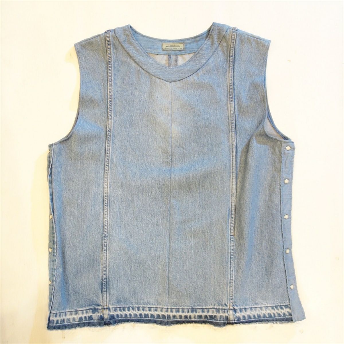 他の画像を見る Loose Threads Vest BLU 販売価格 ¥ 26,180 税込 在庫切れ Levi'sのデニムパンツを素材として製作しております。緩やかなVネックとなり、インナーを選ばない1着です。サイドはデニムシャツのフロントボタンを配置しており、ボタンを開ける事でシルエット調整が可能です。 詳細を見る お気に入りに登録する