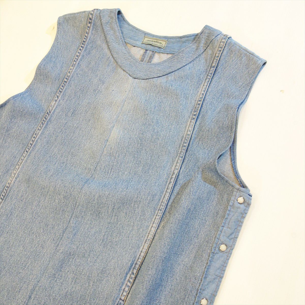 他の画像を見る Short Length Sleeveless Denim Gown BLU 販売価格 ¥ 25,080 税込 在庫切れ ライトオンスのデニムを素材として製作しております。ノースリーブの羽織りなので様々なレイヤードにお使いいただけます。 詳細を見る お気に入りに登録する