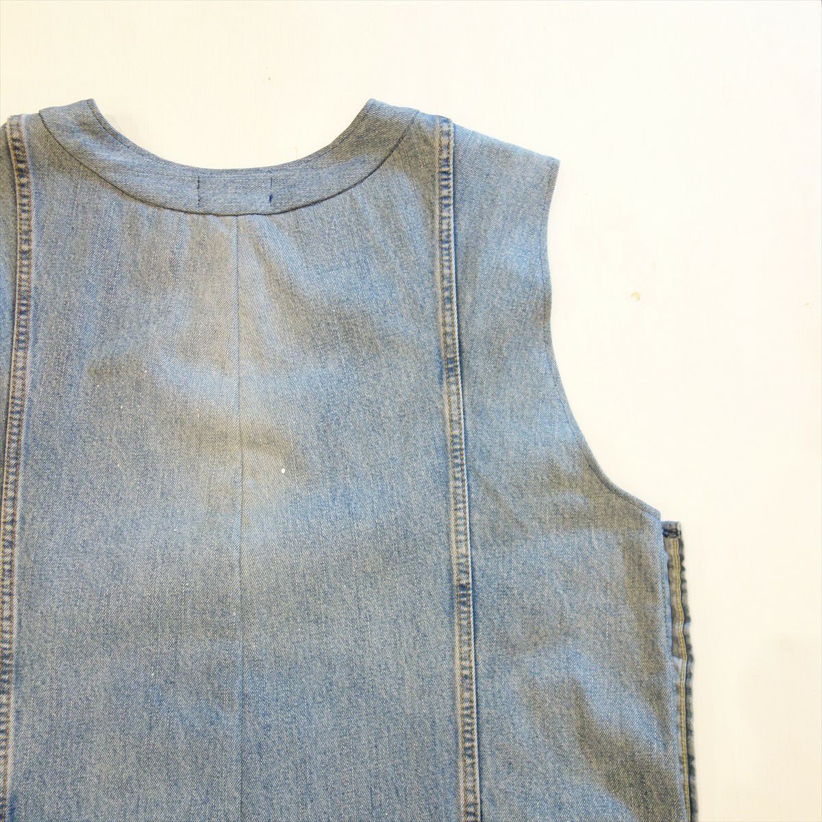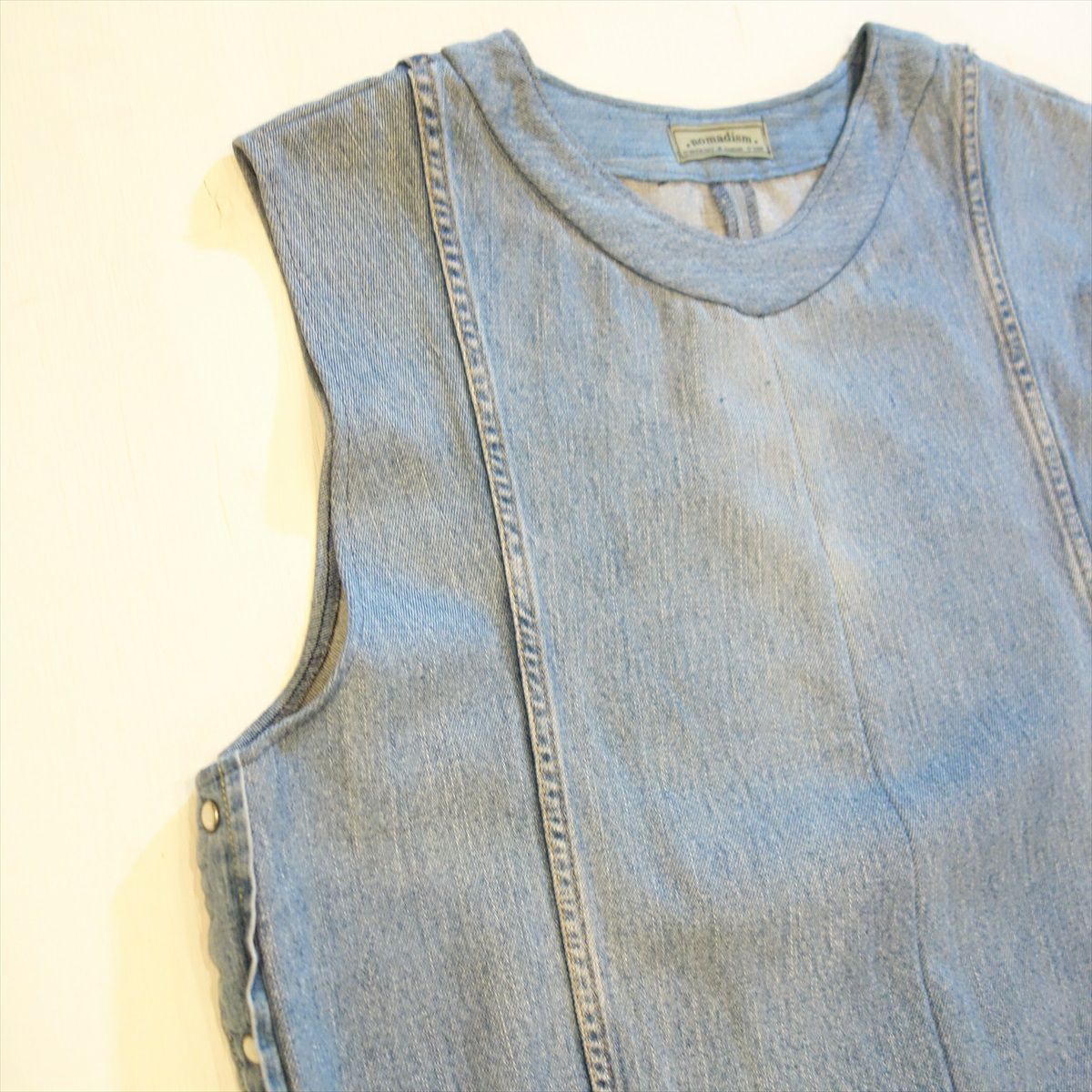 他の画像を見る Loose Threads Vest 販売価格 ¥ 26,180 税込 在庫切れ Levi'sのデニムパンツを素材として製作しております。緩やかなVネックとなり、インナーを選ばない1着です。サイドはデニムシャツのフロントボタンを配置しており、ボタンを開ける事でシルエット調整が可能です。 詳細を見る お気に入りに登録する