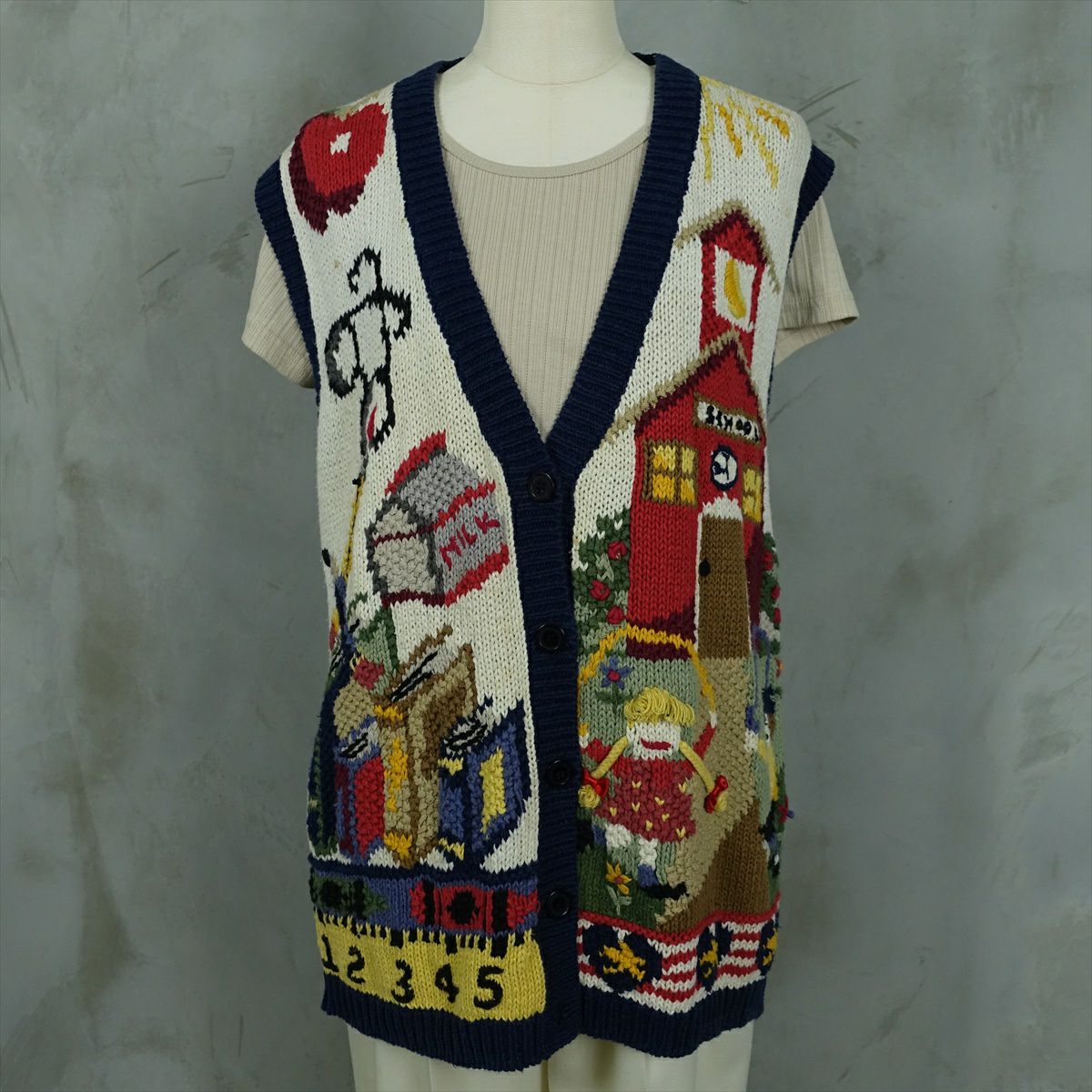古着 前開きVネックニットベスト