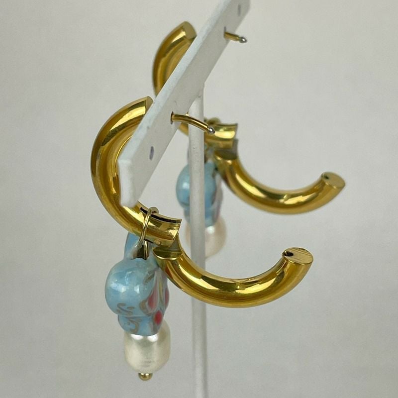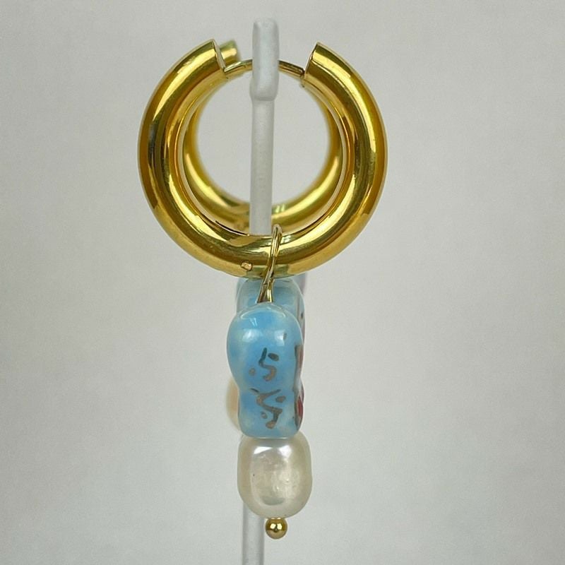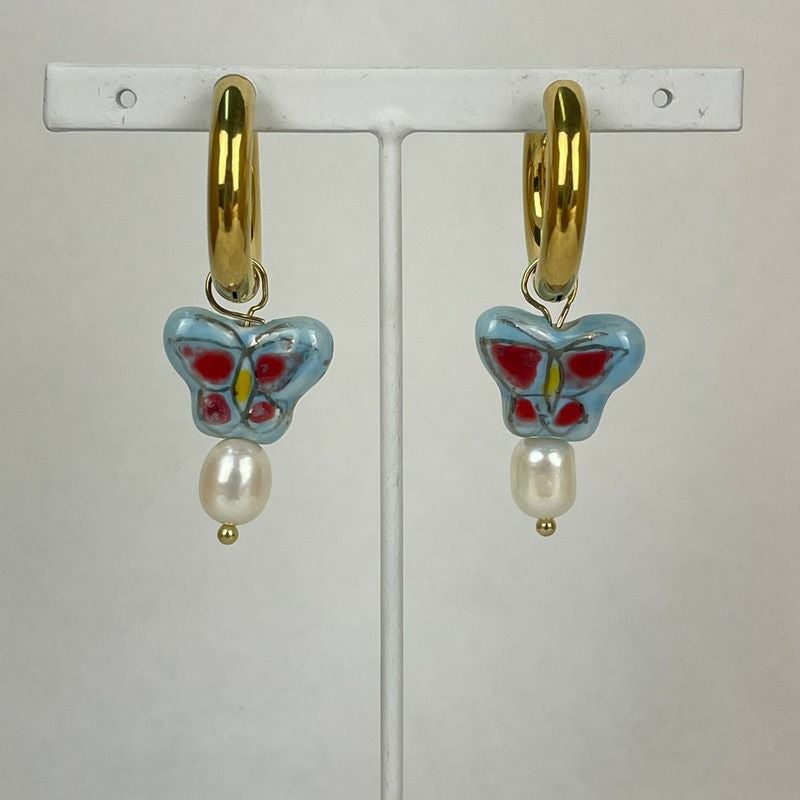 バタフライ チャーム フープ ピアス ブルー