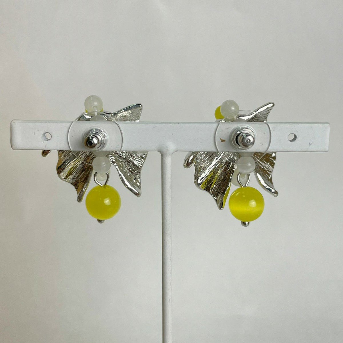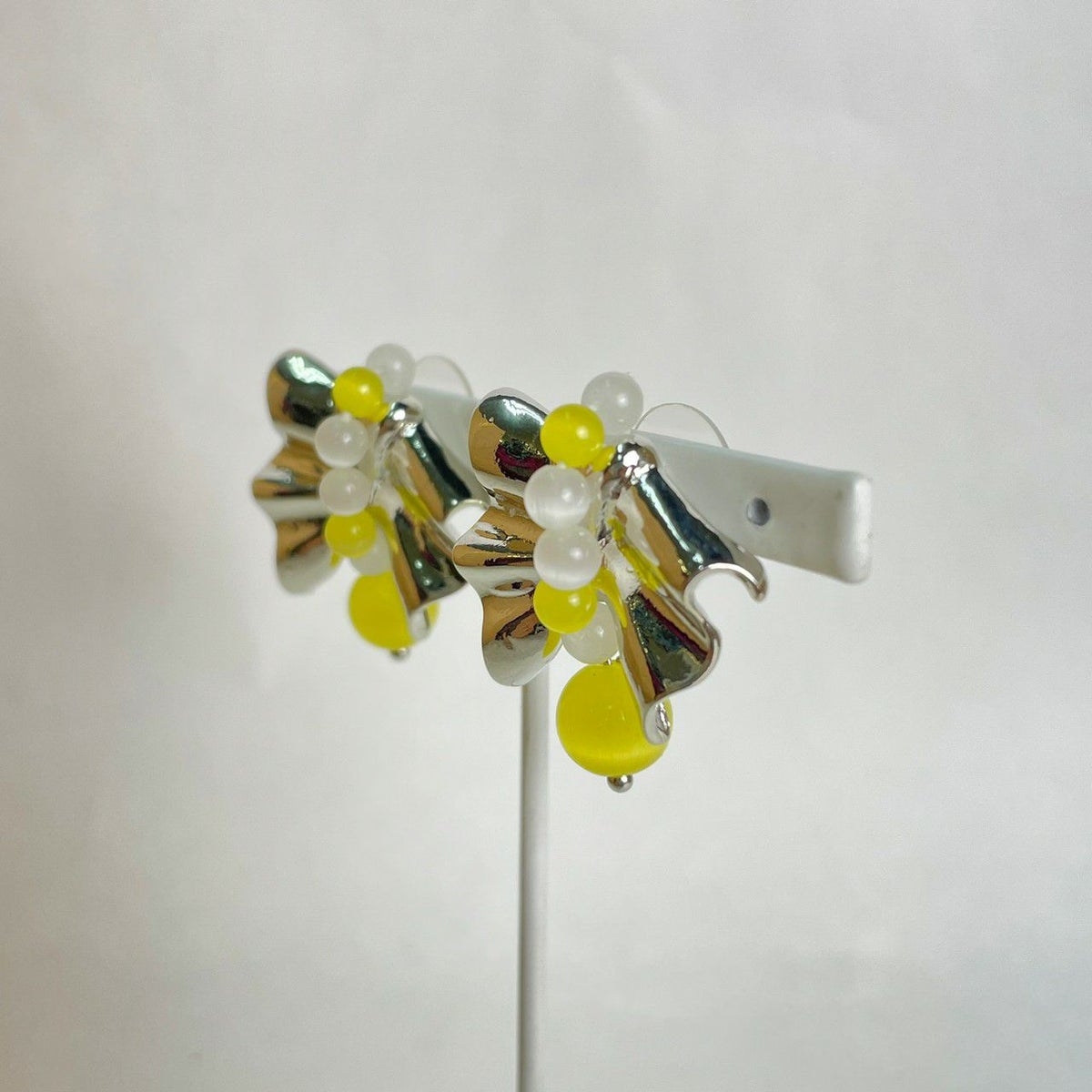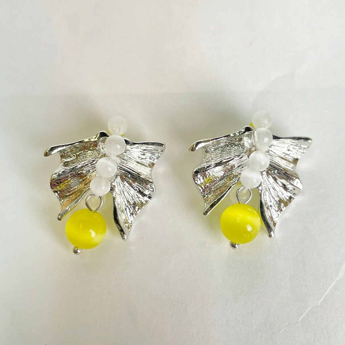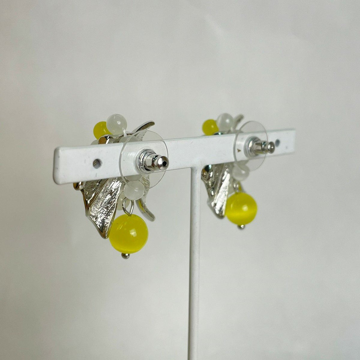 リボン モチーフ ピアス イエロー×シルバー
