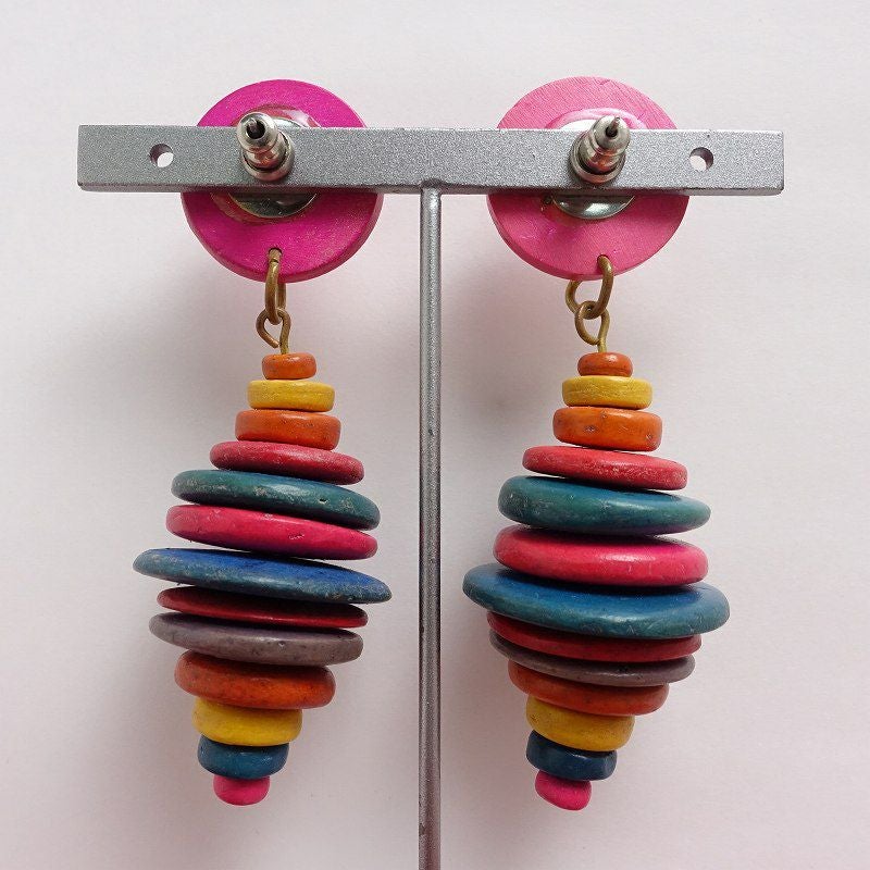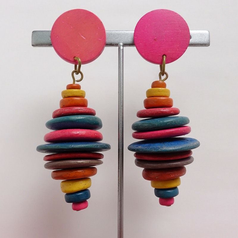 古着 USED 民族風 カラフル ウッド ピアス