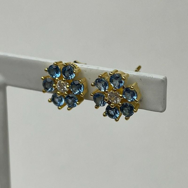 フラワー デザイン ピアス ブルー×ゴールド