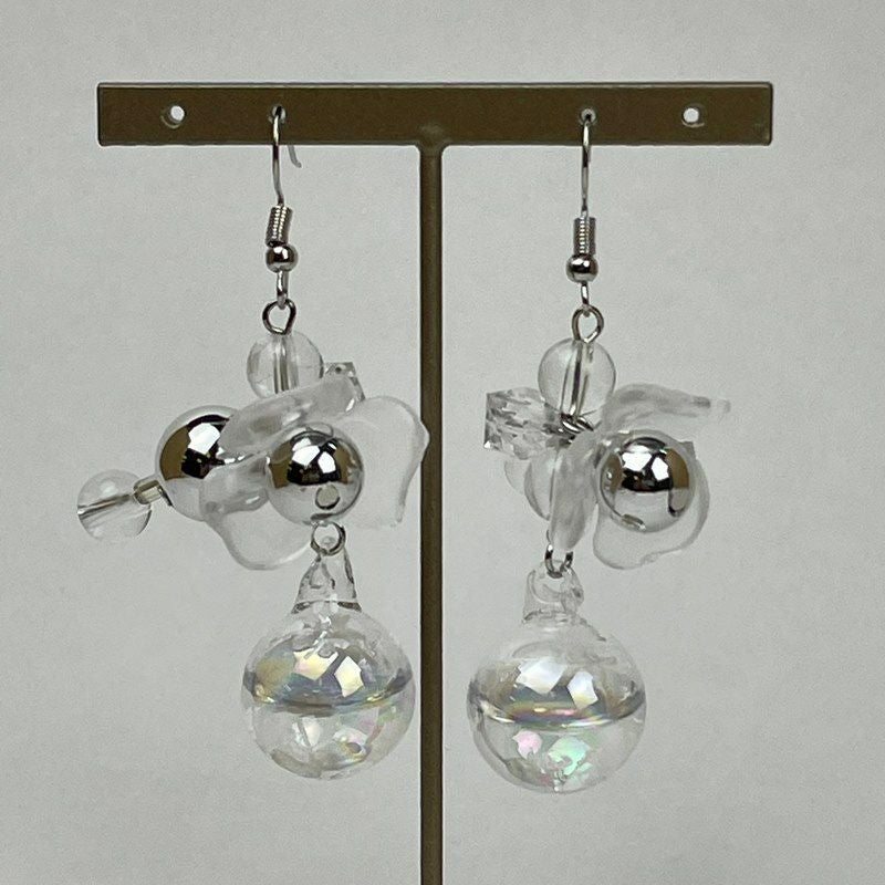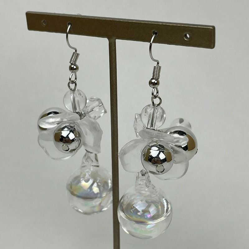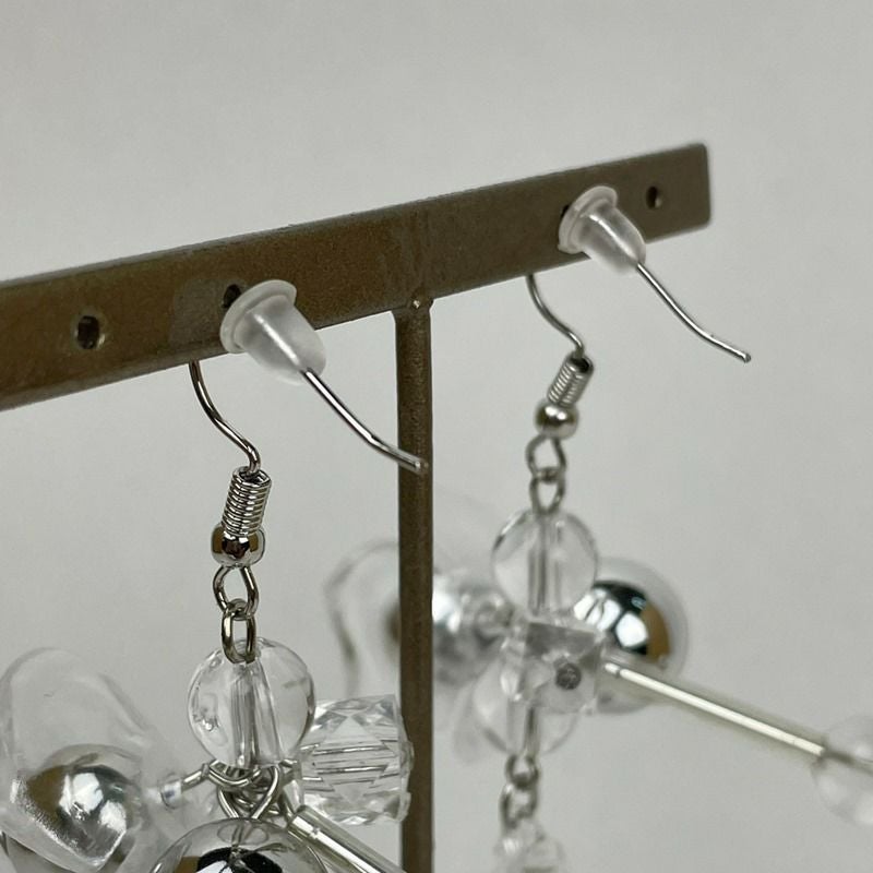 フラワー デザイン クリア ピアス クリア×シルバー