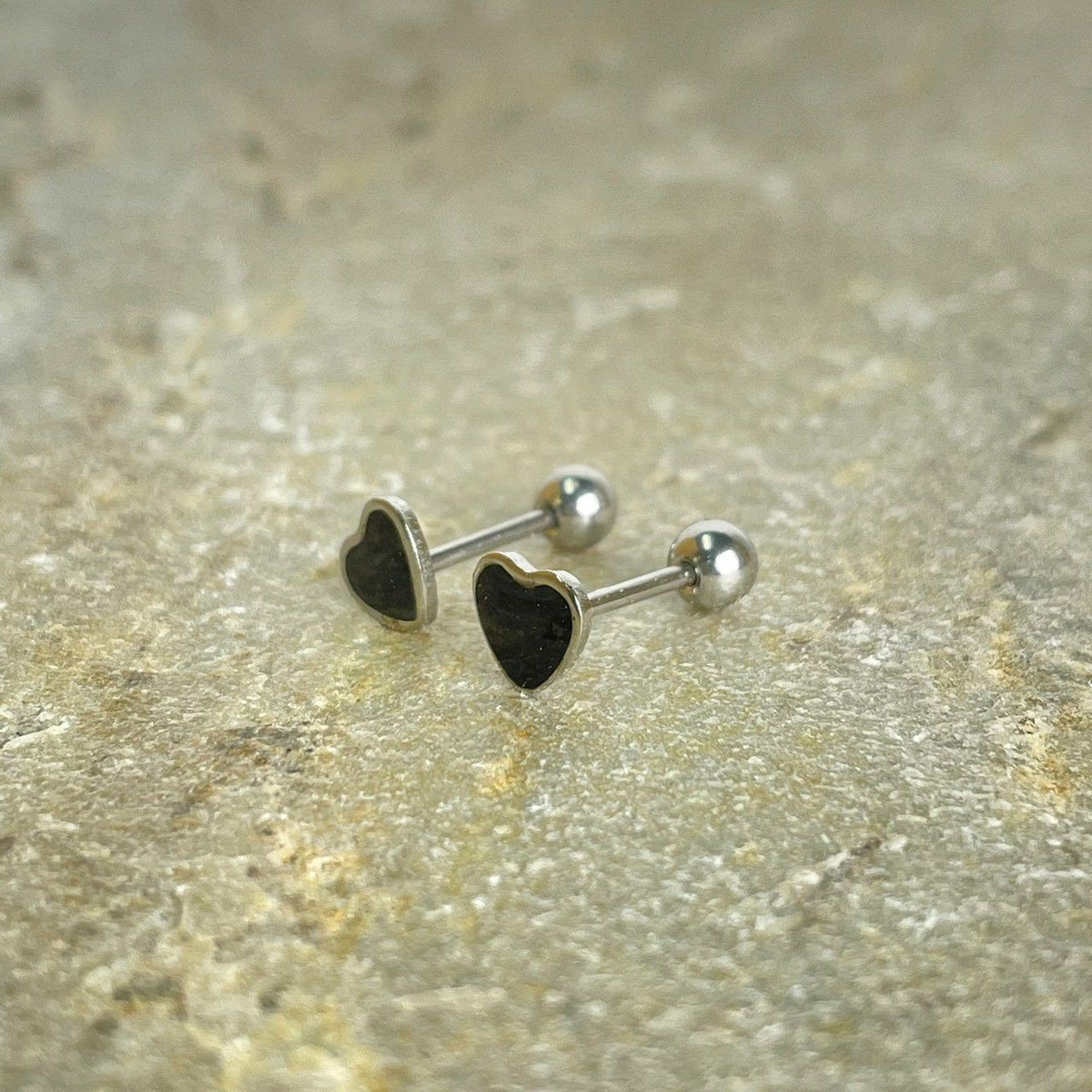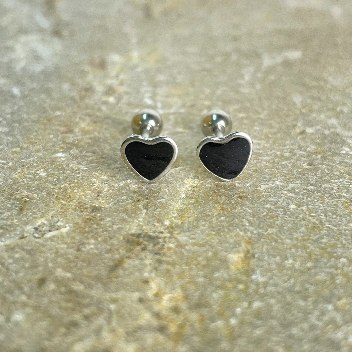 ハート デザイン ピアス シルバー×ブラック
