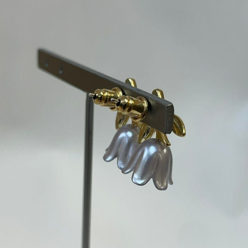 フラワー デザイン ピアス ホワイト ゴールド