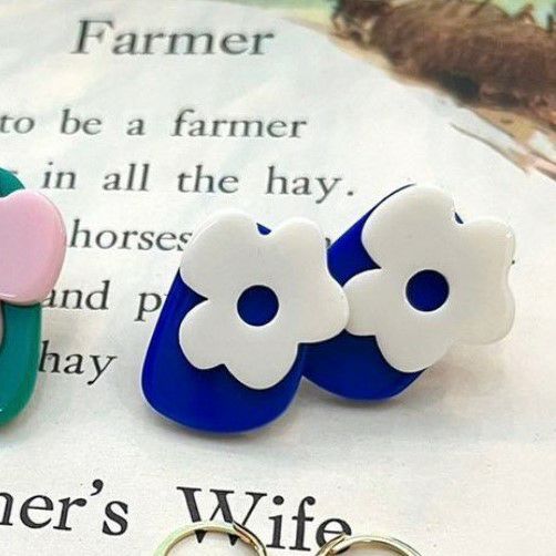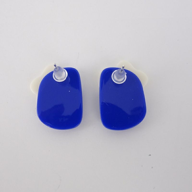 フラワー モチーフ デザイン ピアス ブルー&ホワイト