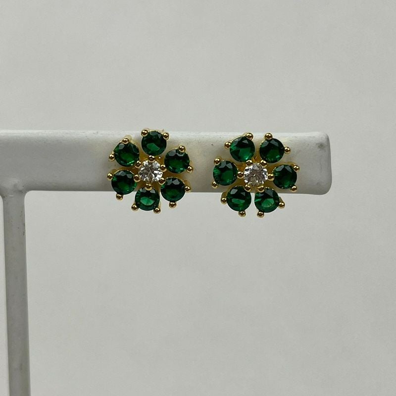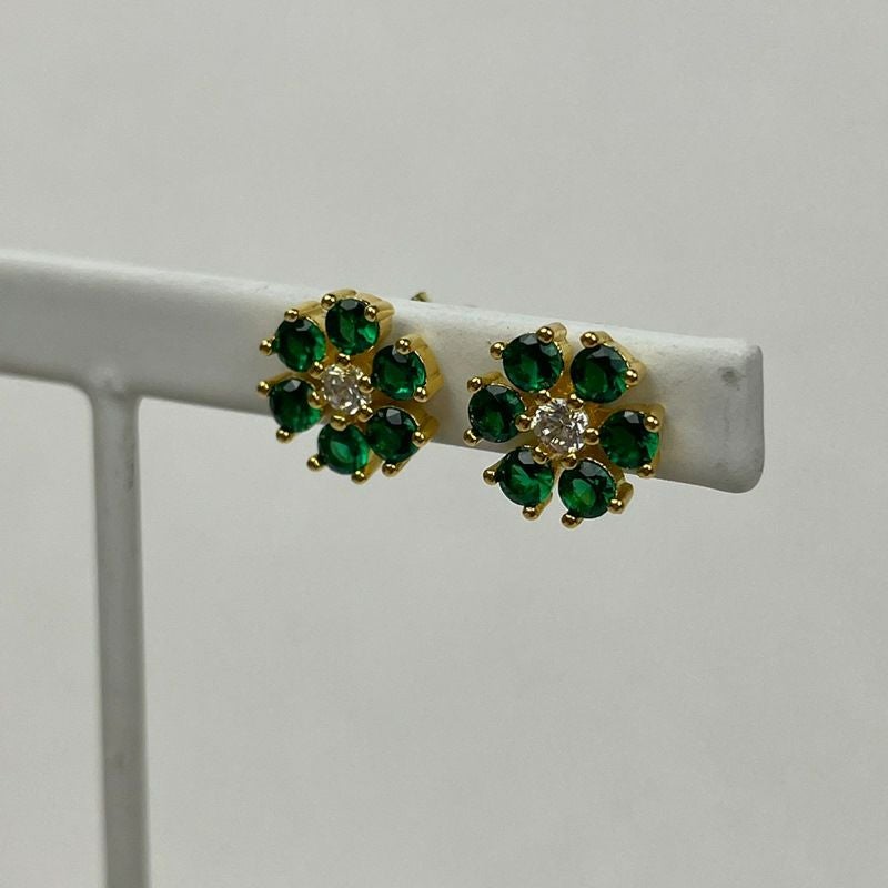 フラワー デザイン ピアス ゴールド×グリーン