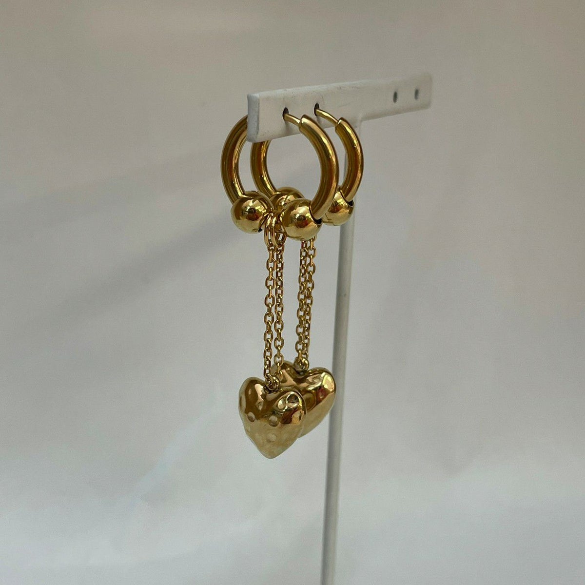 ハート チャーム デザイン フープ ピアス Gold