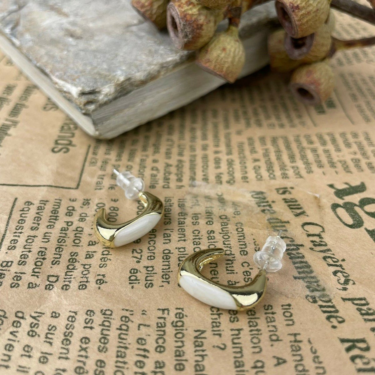 シェル ホワイト キャッチピアス ゴールド