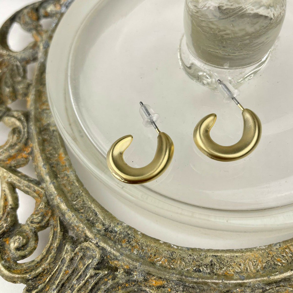 変形フープ キャッチピアス マットゴールド