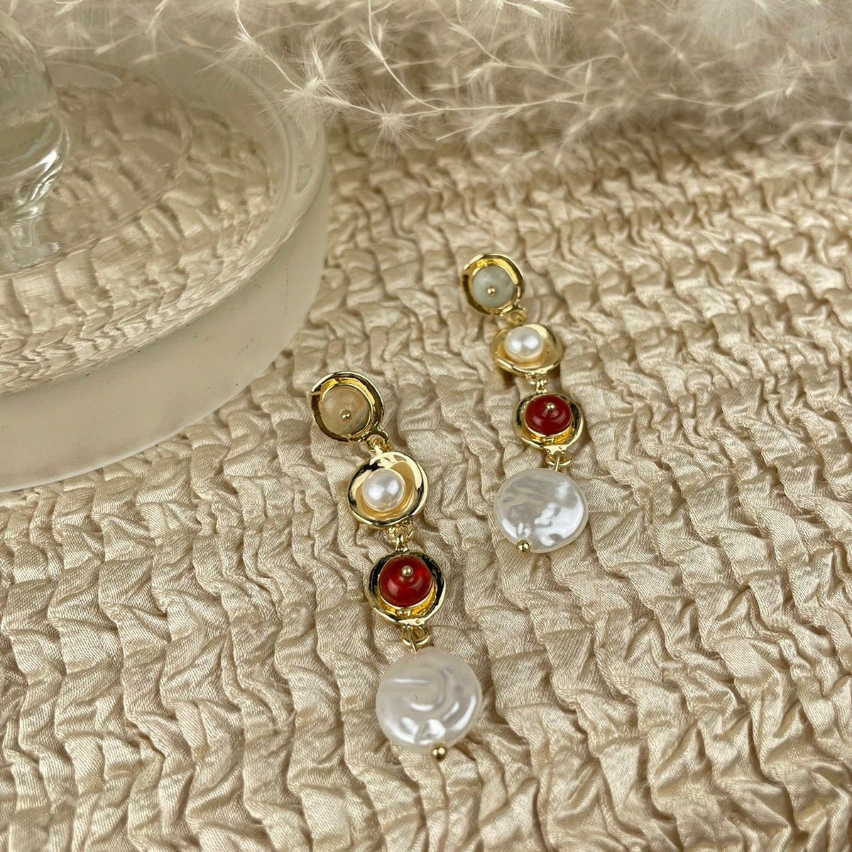 カラフル パール×ストーン 4連キャッチピアス