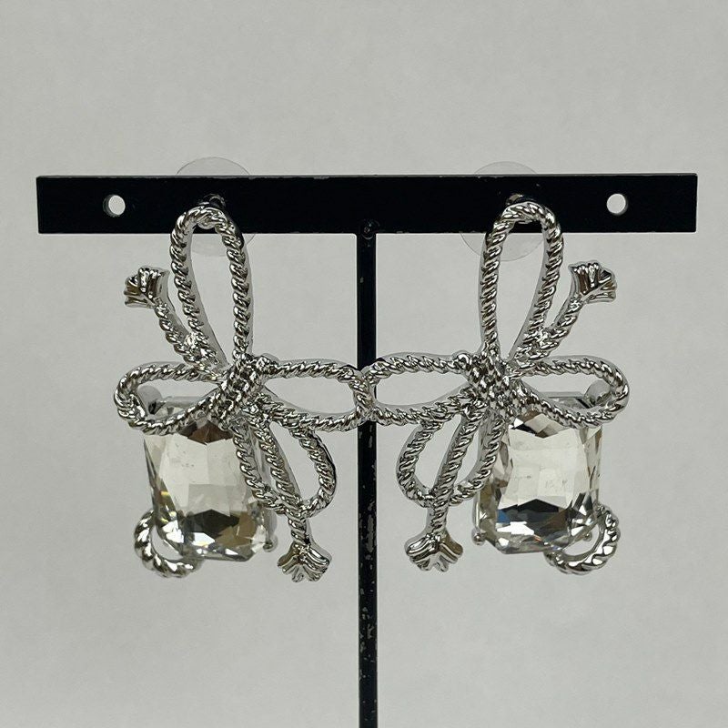 シルバー クリアチャーム ピアス