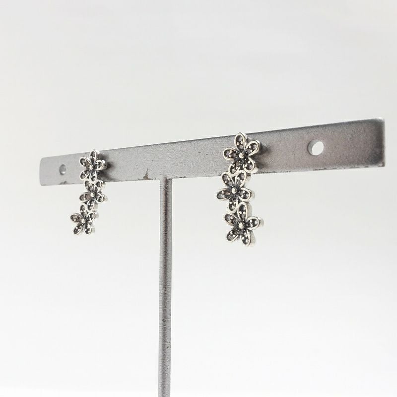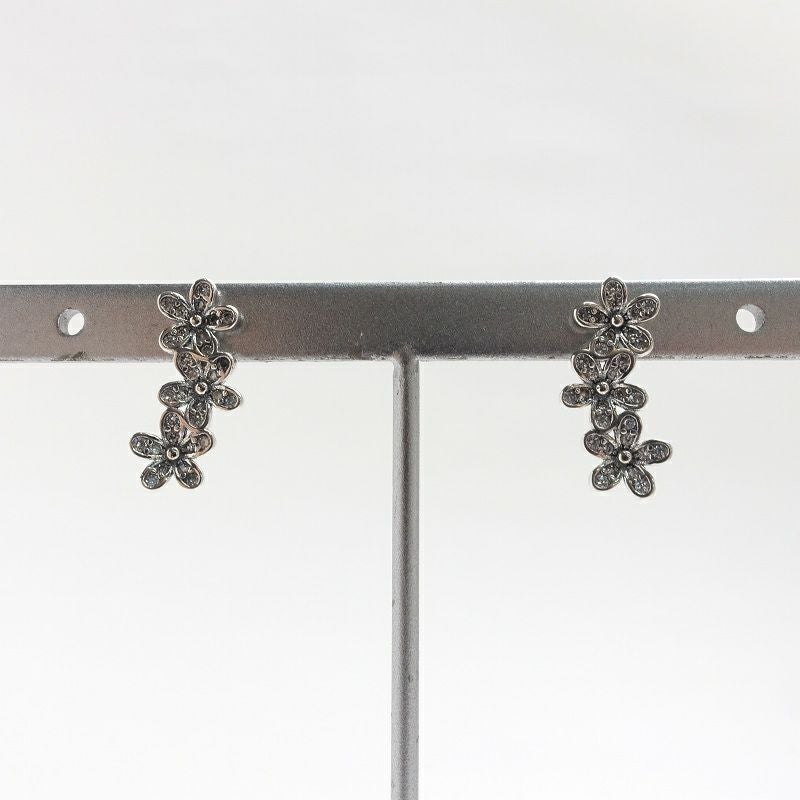 フラワー 三連 シルバー ピアス