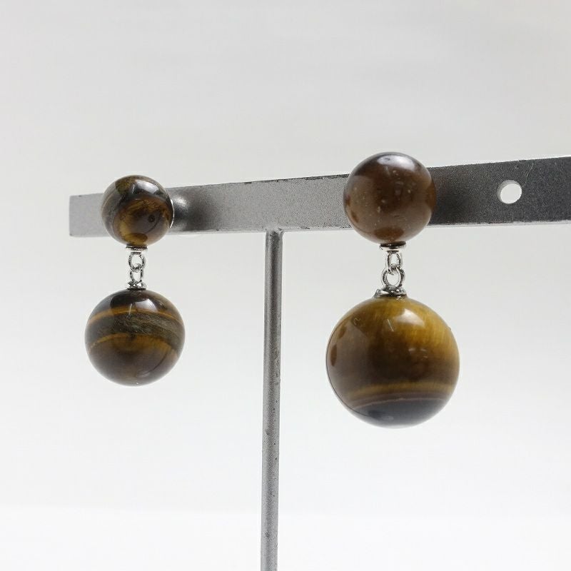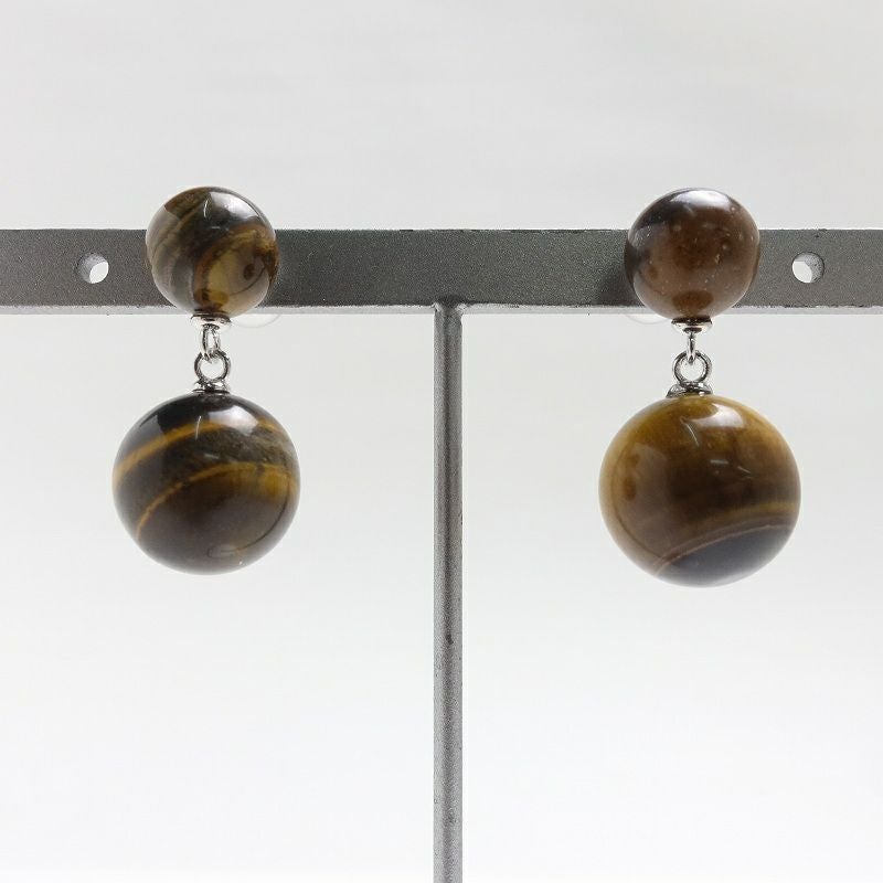 チャーム 二連 ブラウン ピアス