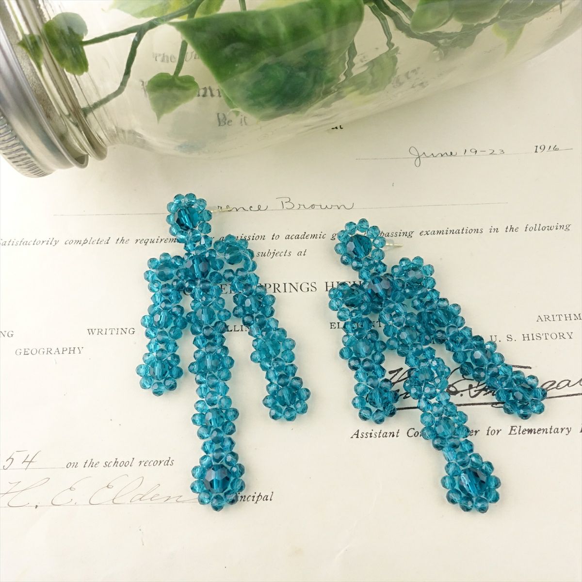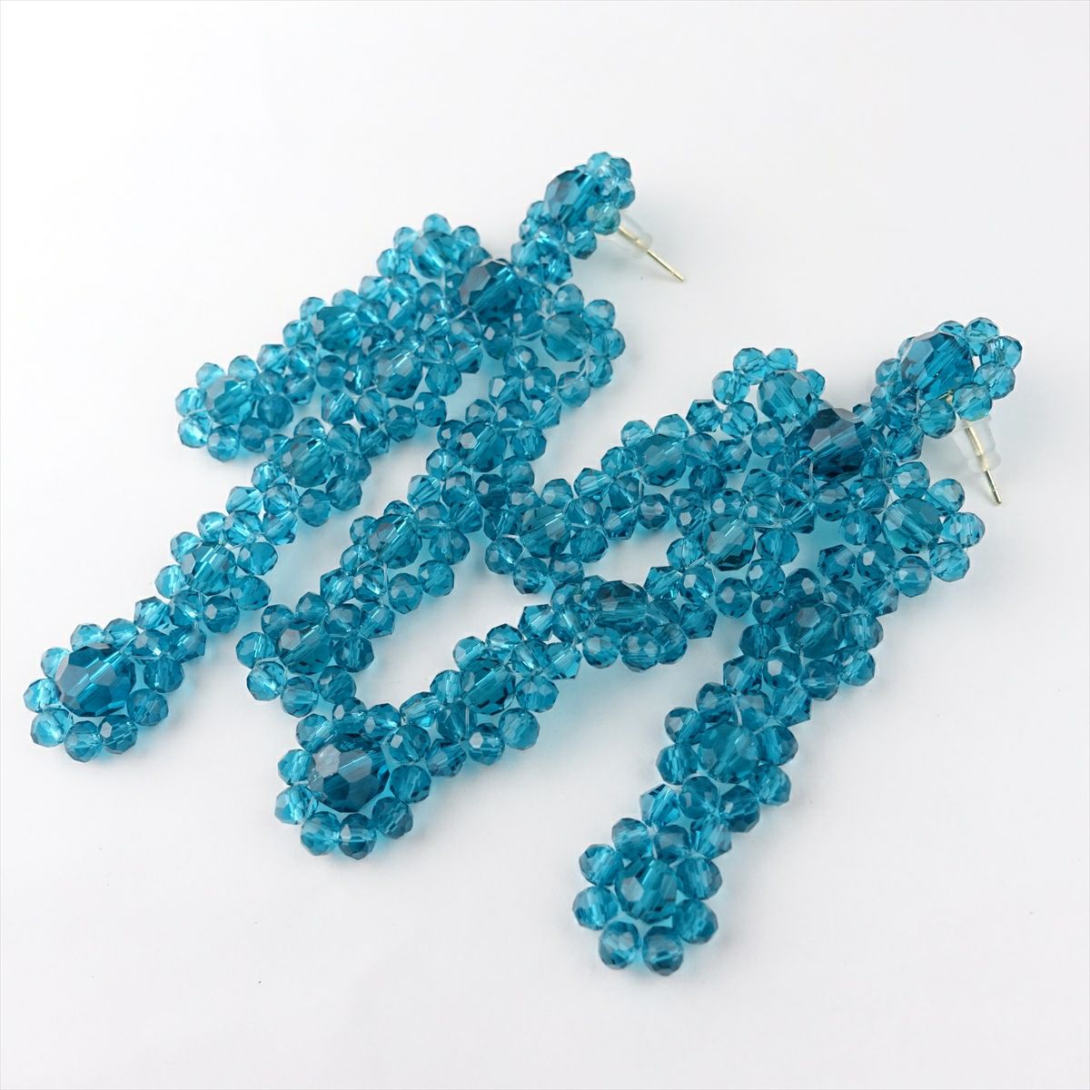 アシンメトリー クリアビーズピアス ブルー
