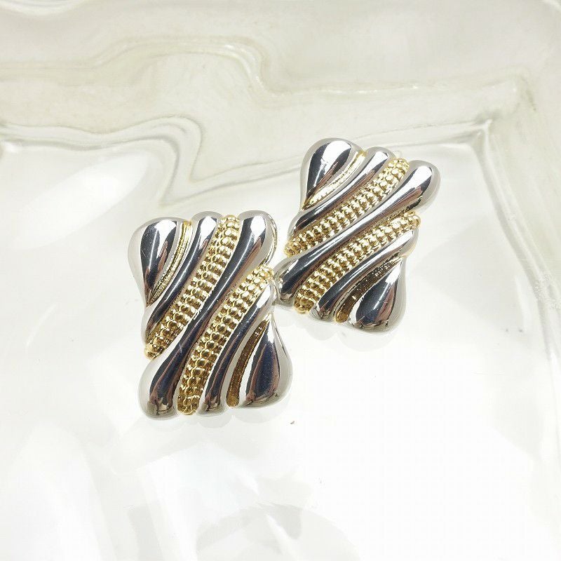 ゴールド シルバー 2トーン スクエアピアス