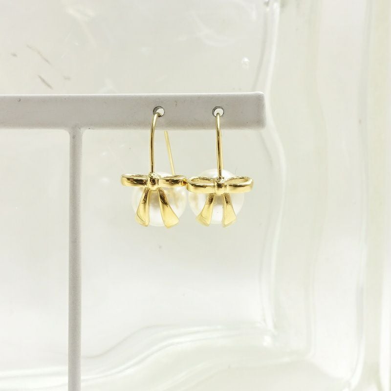 ゴールド リボン×パール スイングピアス