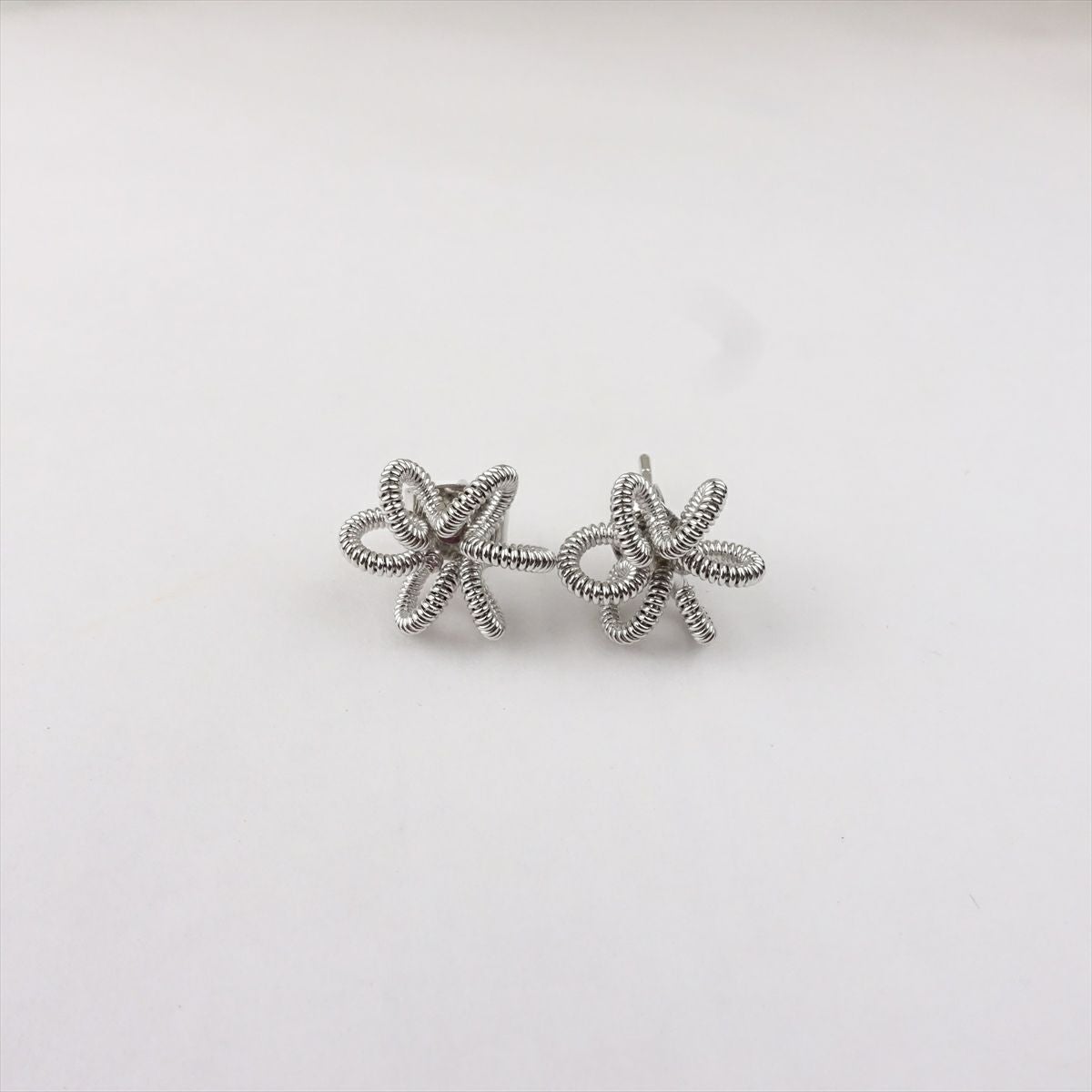 フラワーツイストデザイン スネークチェーンピアス シルバー