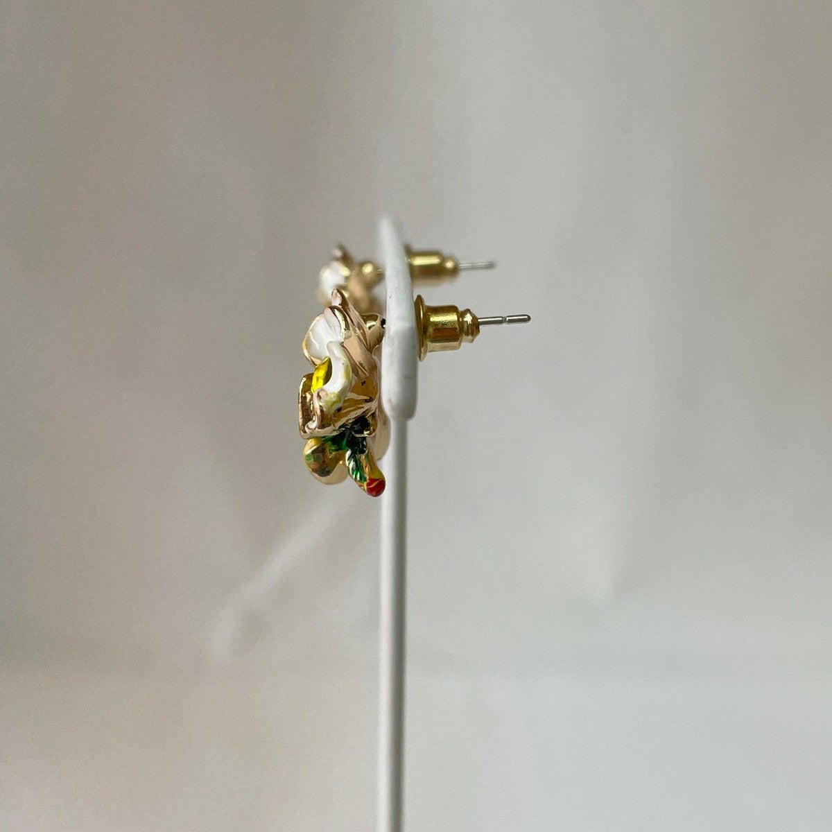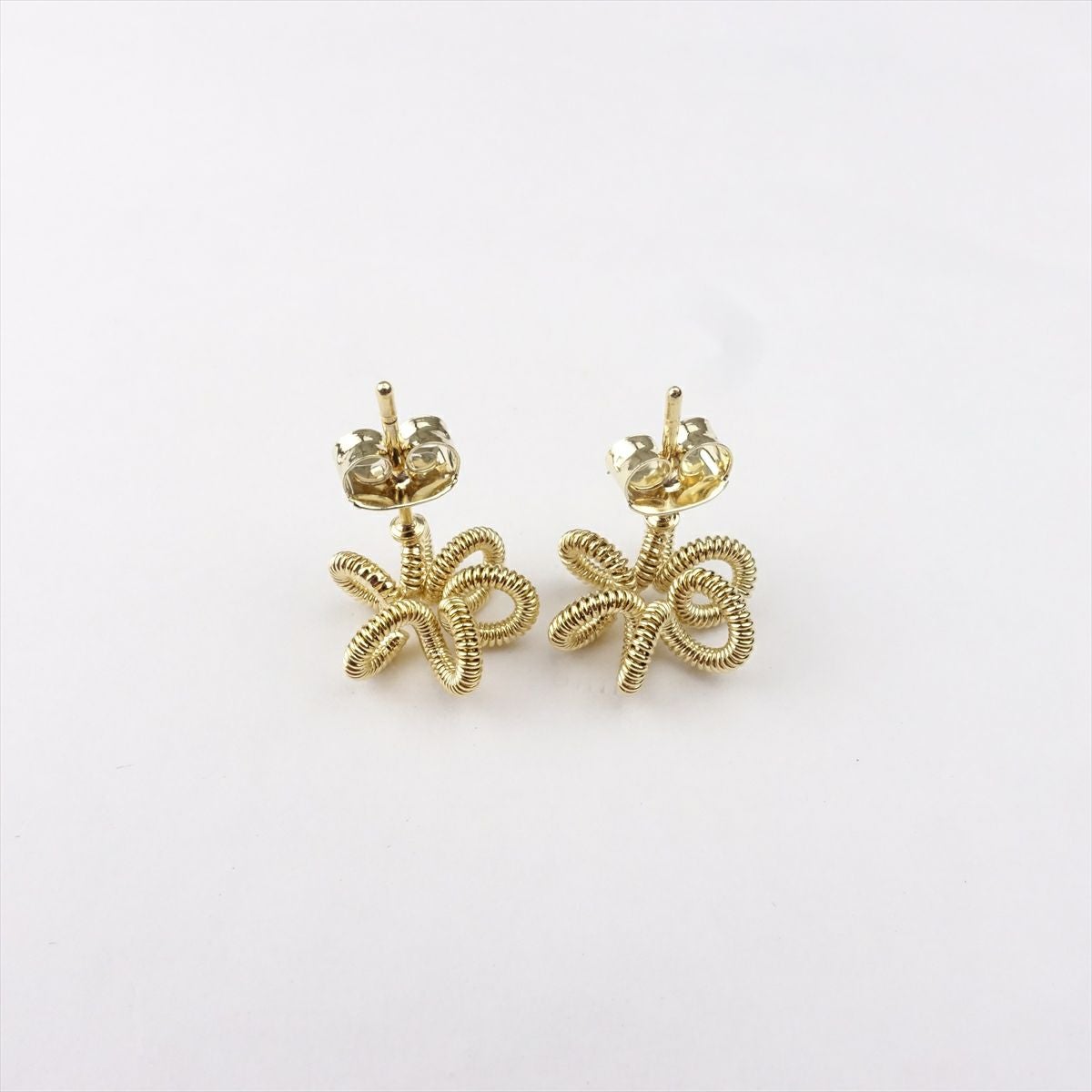 フラワーツイストデザイン スネークチェーンピアス ゴールド