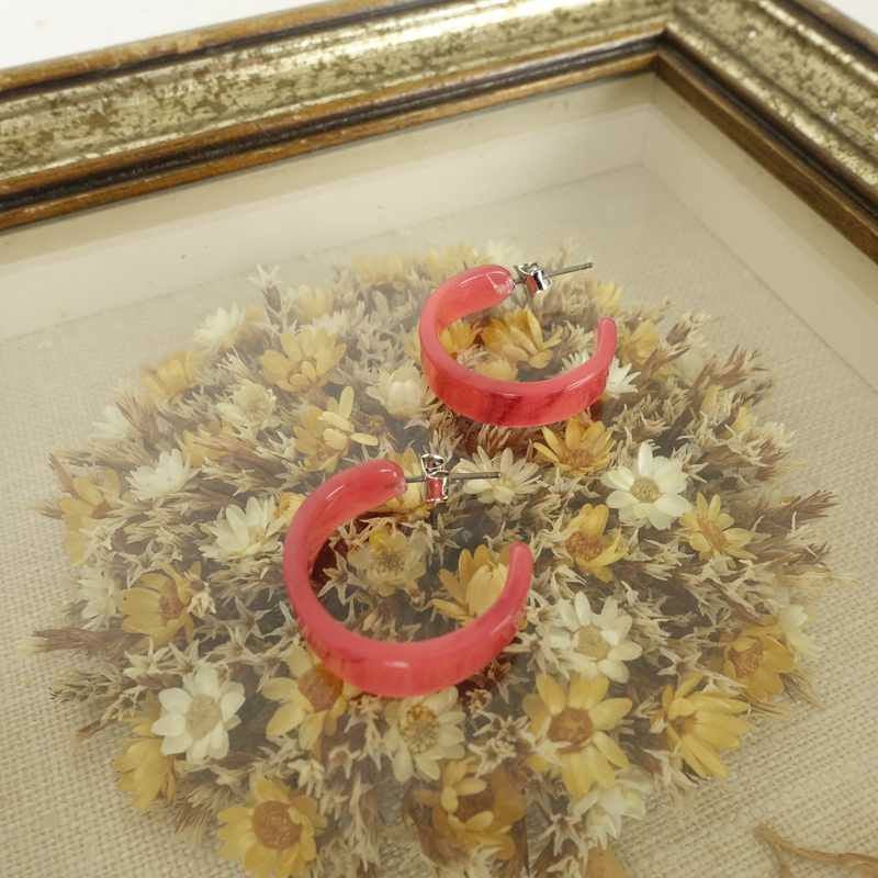 フープピアス マーブル ピンク