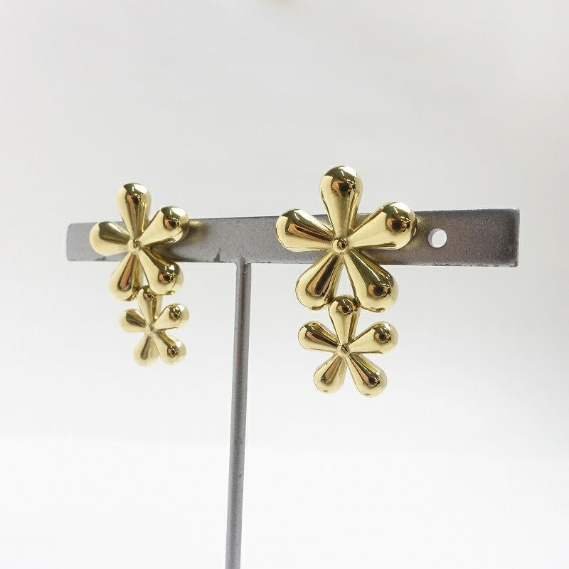 フラワー 二連 ゴールド ピアス