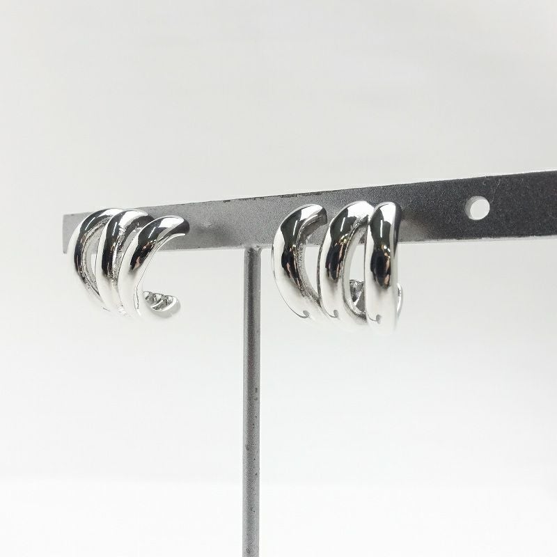 三連風 シンプル シルバー ピアス