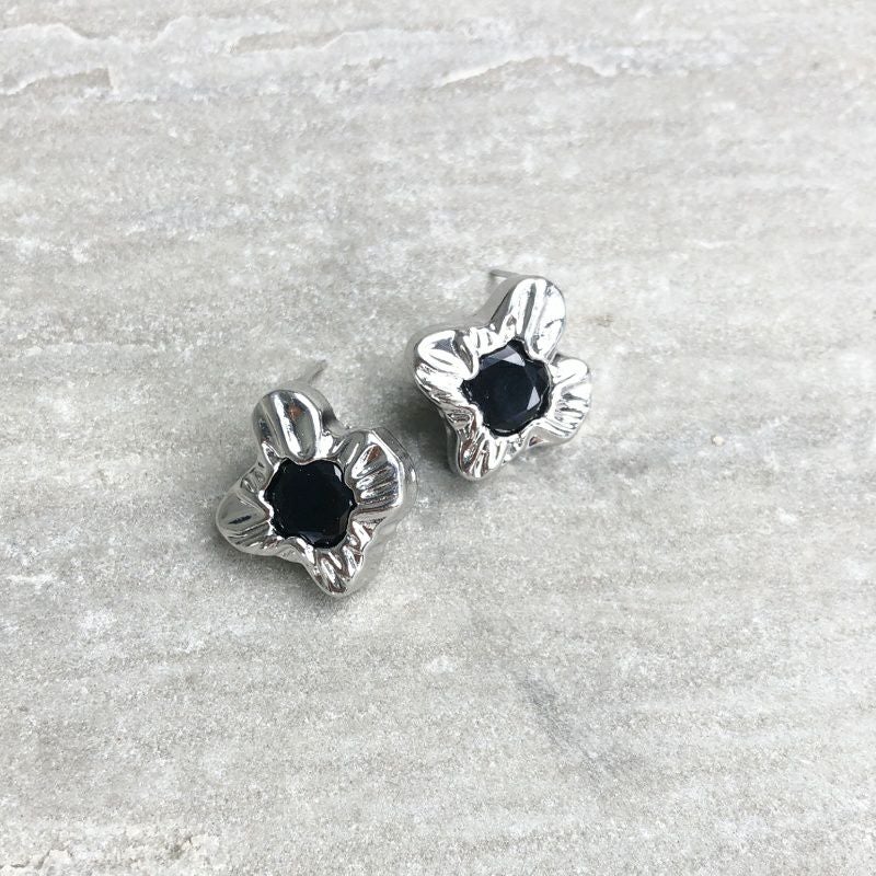 シルバー ブラックストーン ピアス