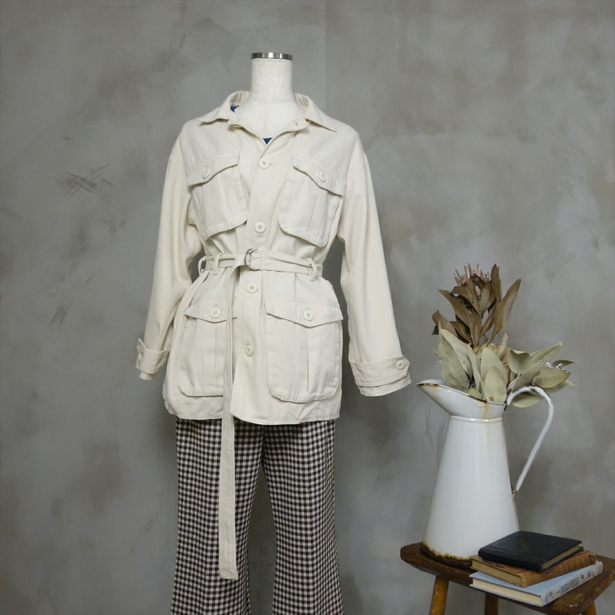 他の画像を見る Fafatt ファファット ハンティングジャケット 販売価格 ¥ 8,580 税込 アフリカ発祥の狩猟用ジャケットをサンプリングしたアイテムです。レディースでも合わせやすいアイボリーのボディや、野暮ったく見えるディティールを変更したことによってコーディネートに落とし込みやすいようになっています。ウエストのベルト、袖の絞りボタン、開襟にもできる襟などその時の気分やコーディネートによってさまざまな変化をつけることができます。 カートに入れる お気に入りに登録する