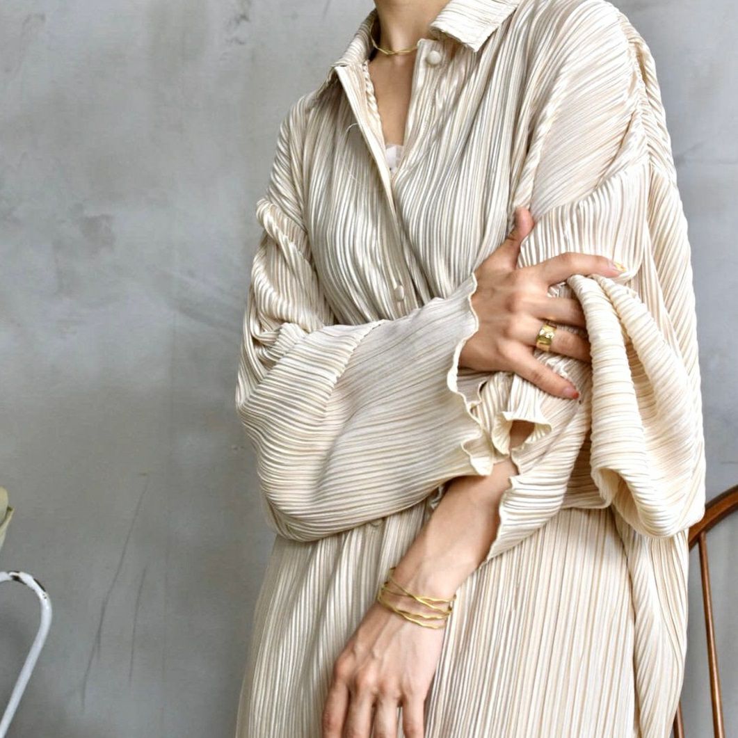 他の画像を見る Fafatt ファファット アイボリープリーツシャツ 販売価格 ¥ 6,380 税込 在庫切れ テロンとした素材感とくるみボタンが特徴的なプリーツシャツです。全体的にゆとりがあるので1枚でも、ウエストにベルトやスカーフを巻いても可愛いです。207-11とセットアップ仕様になっております。 プリーツパンツはこちら 詳細を見る お気に入りに登録する