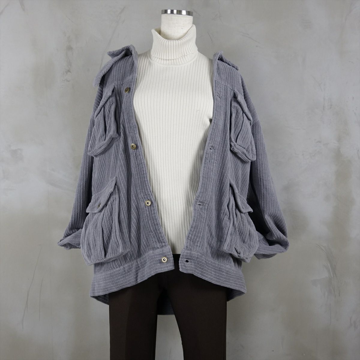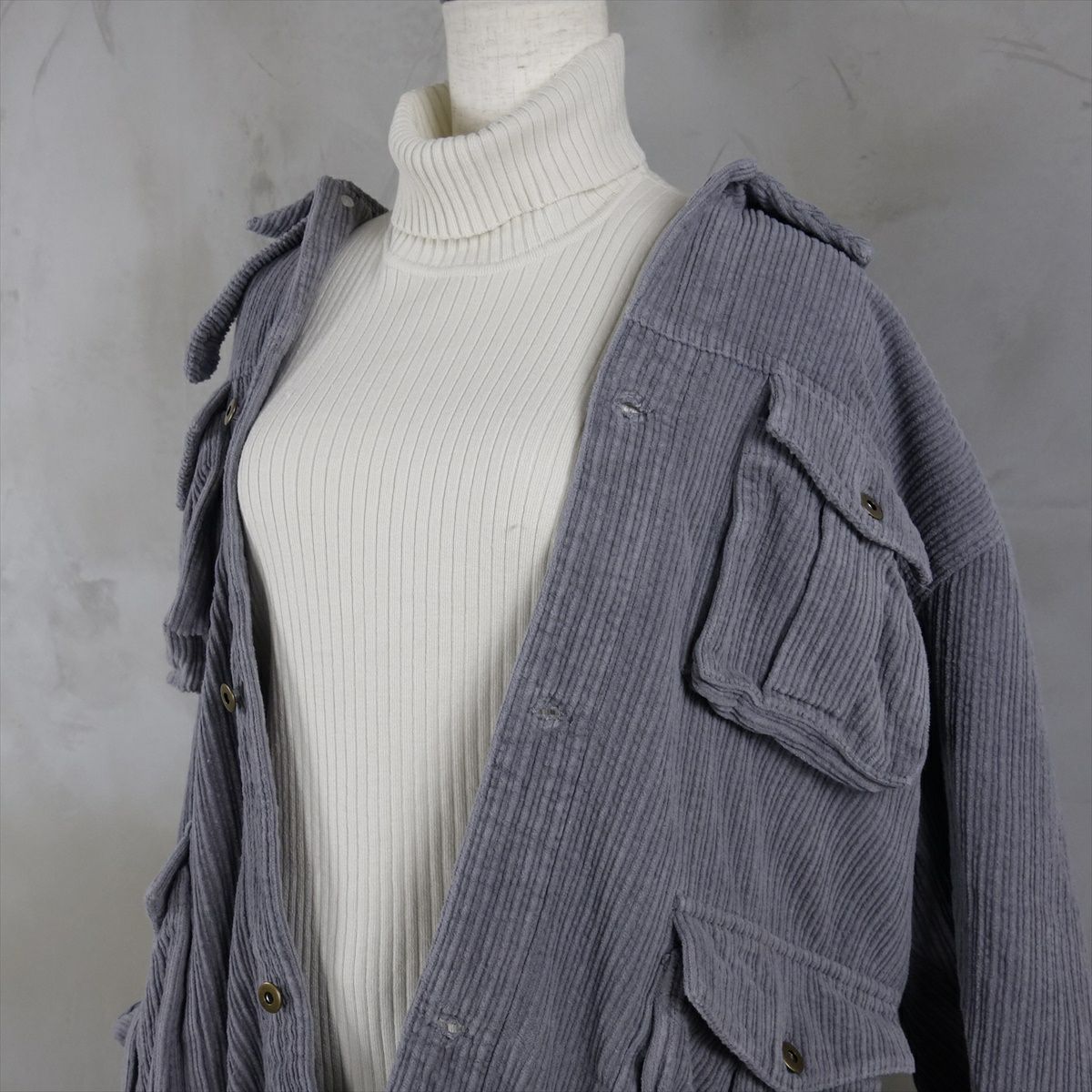他の画像を見る fafatt ファファット コーデュロイカバーオール SALE 30%OFF ¥ 7,546 税込 コーデュロイ地のジャケットです。フロントに4つ付いた大きなポケットがポイントになっています。太めのパンツを合わせたゆったりしたコーディネートにも細めのパンツを合わせた綺麗目なコーディネートにも使える万能アイテムです。アースカラーなので黒や白以外にも原色系やパステルカラーなどを一緒に取り入れても上級者のコーデができます。女性の方もゆるっとオーバーサイズや肩を落として着ていただけると可愛く着こなせるかと思います。 カートに入れる お気に入りに登録する