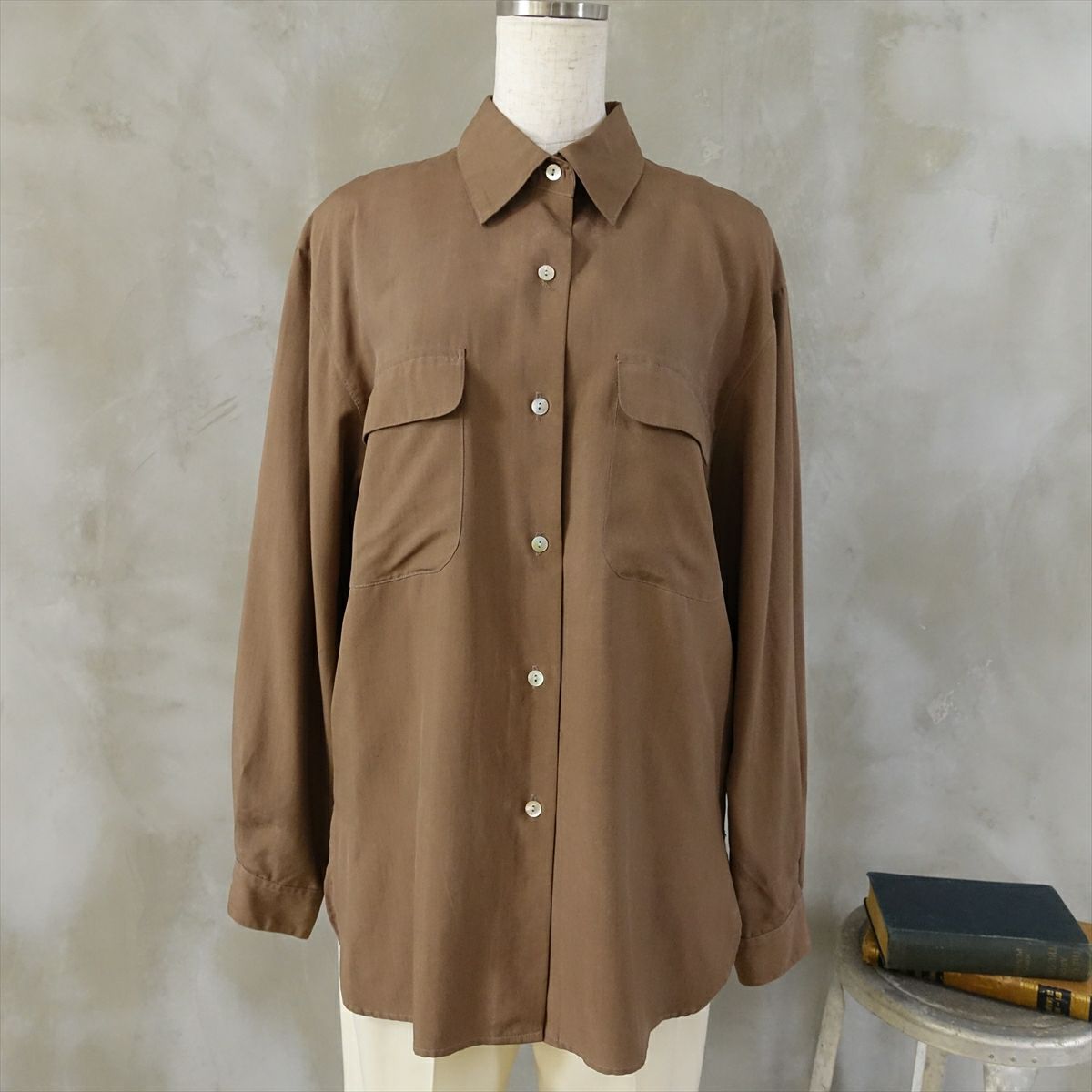 古着 長袖シャツ アースカラー シルク