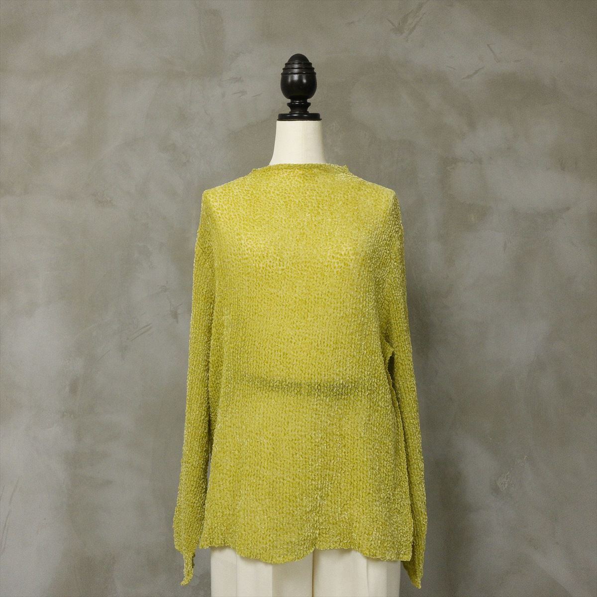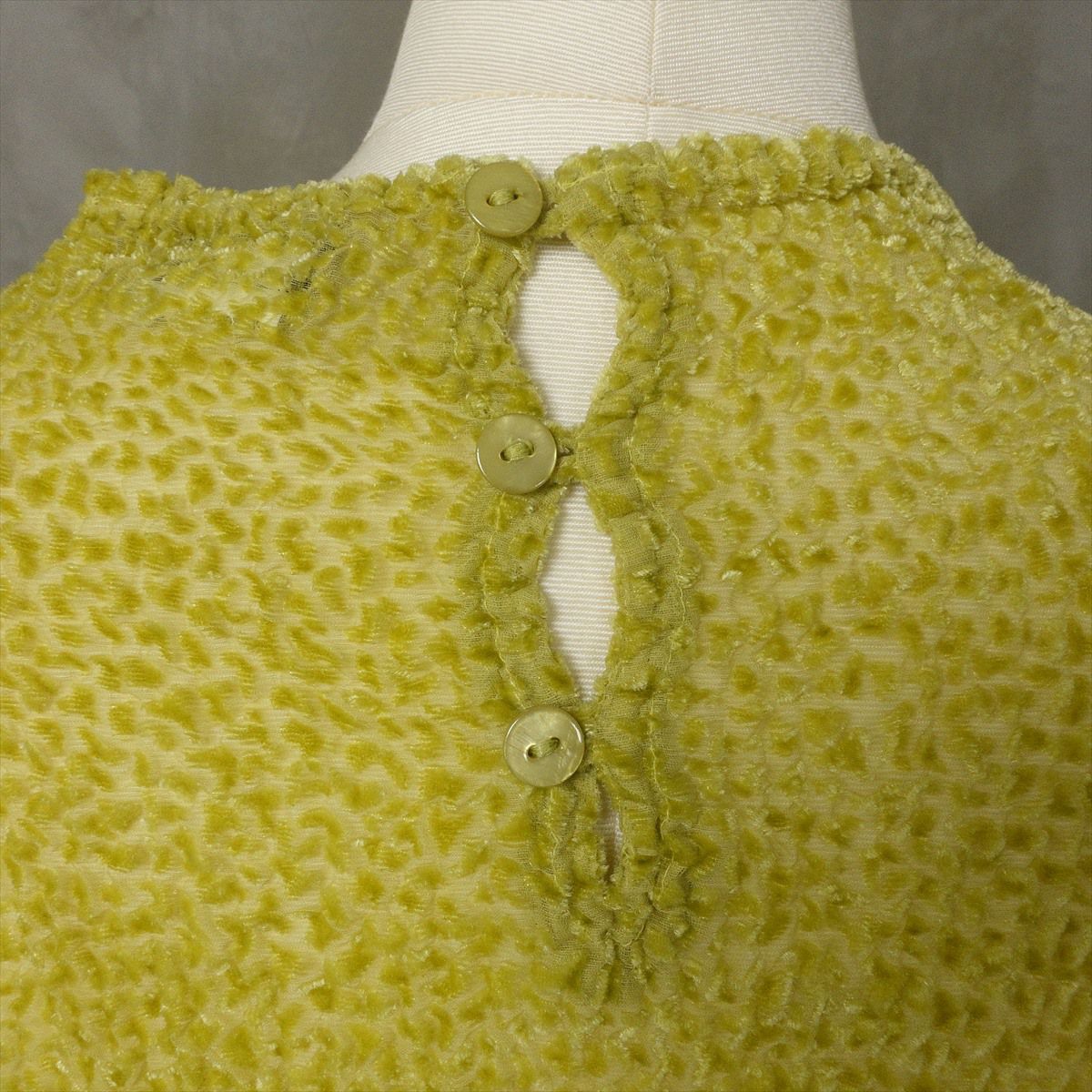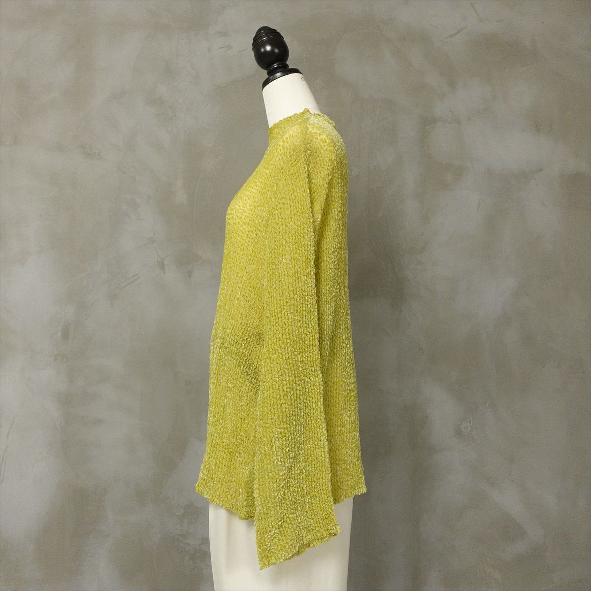 古着 ベロア シースルー ノーカラーシャツ