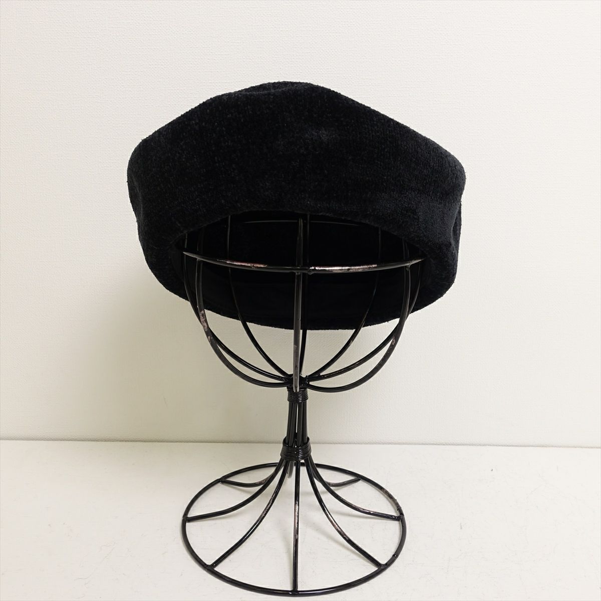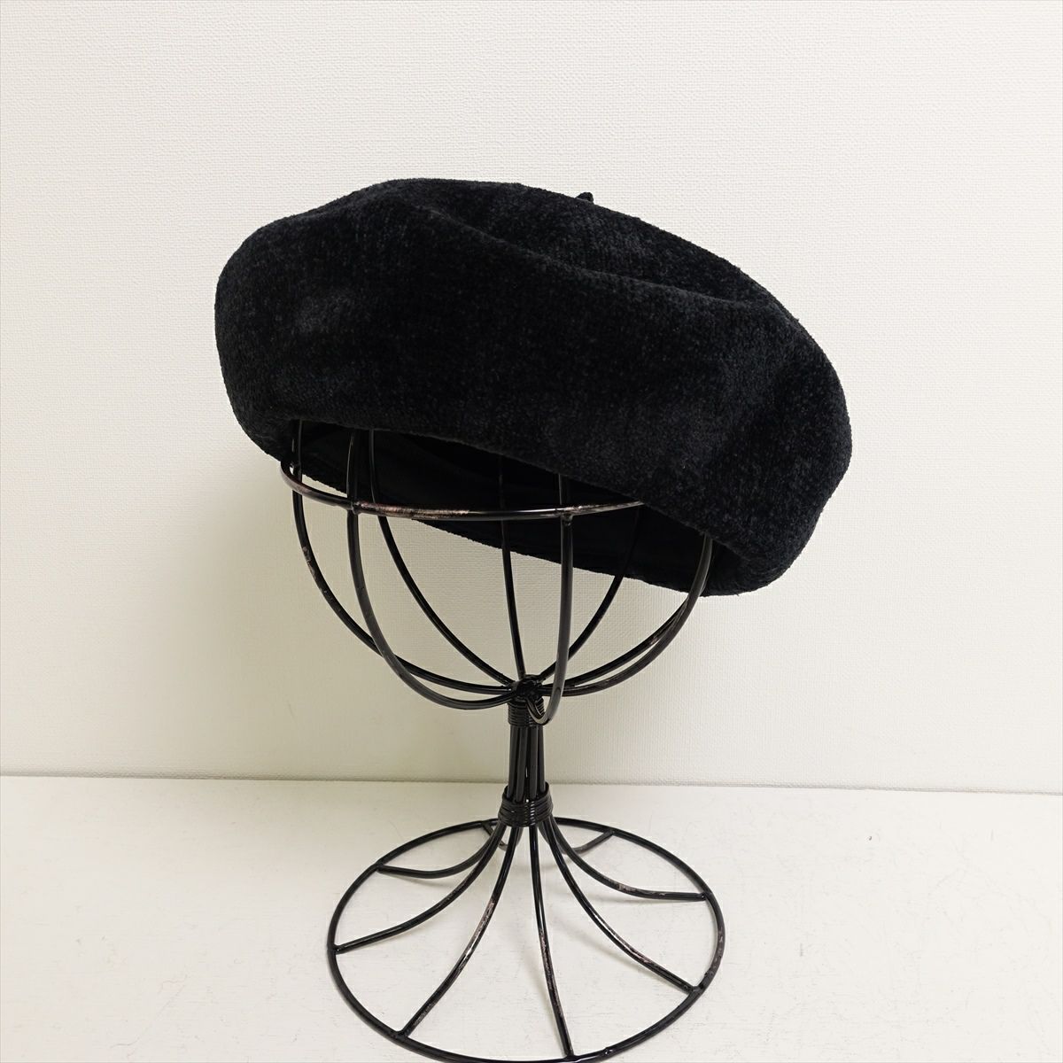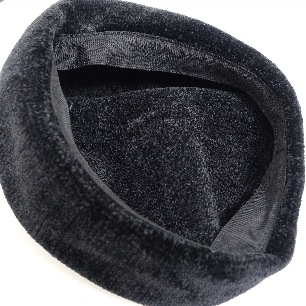ベロア ポッチ付き ベレー帽 ブラック