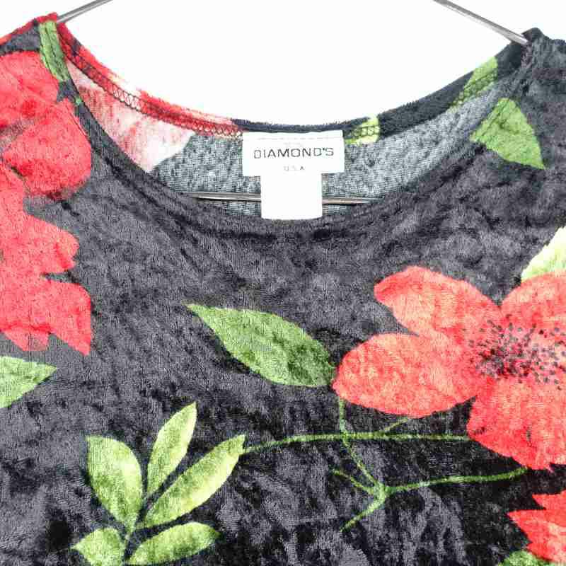 古着 DIAMONDS ベロア 花柄 ロンT