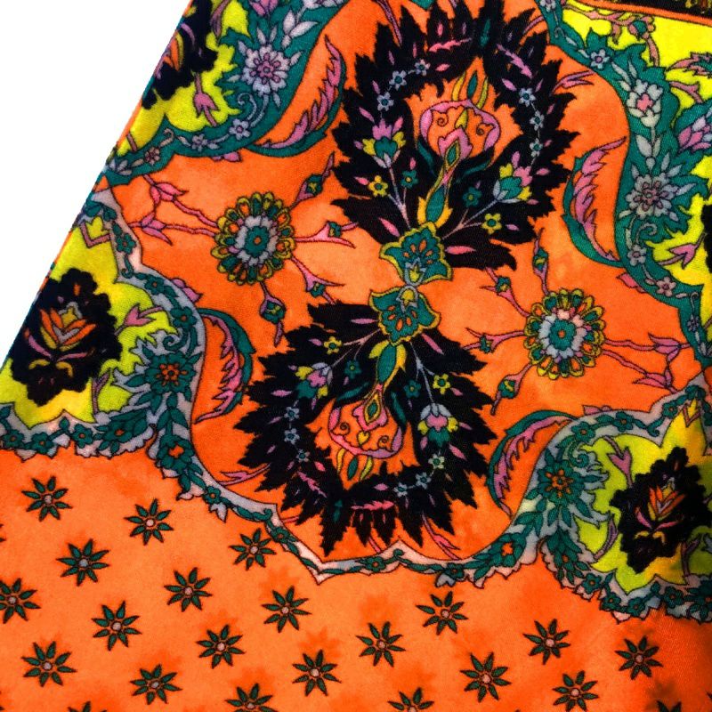 古着 70s ベロア風 総柄 ワイドパンツ