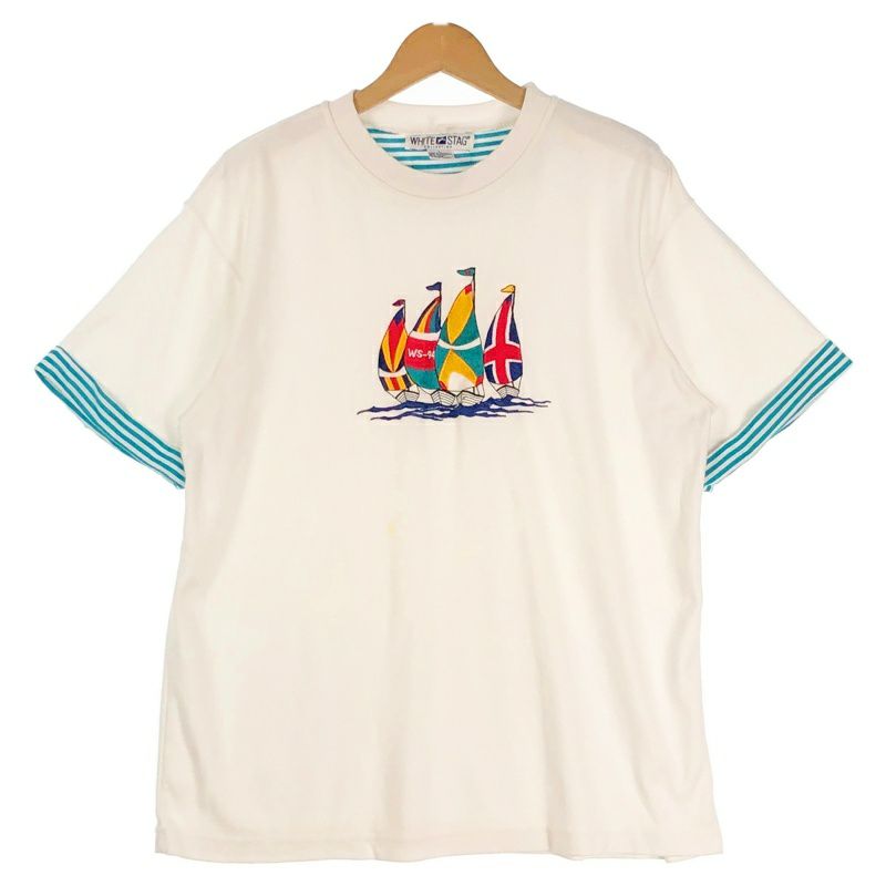 古着 WHITESTAG ヨット 刺繍Tシャツ