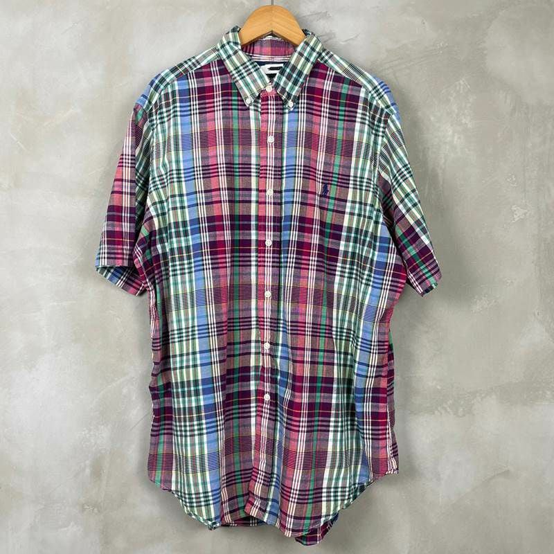 古着 ラルフローレン 半袖マドラスチェックシャツ