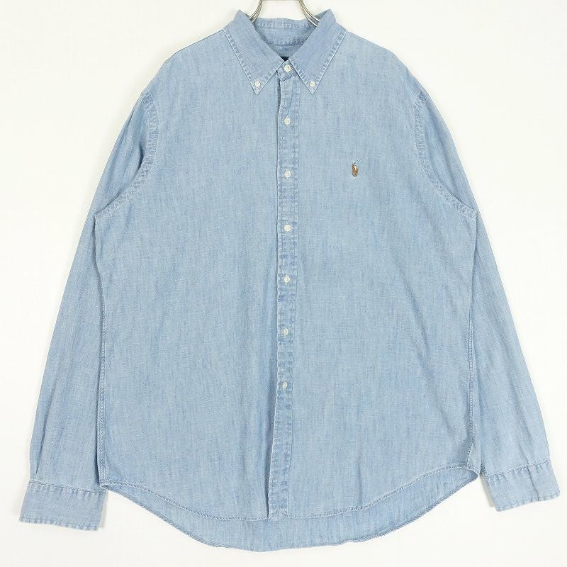 古着 Ralph Lauren 1P ボタンダウン 無地 長袖シャツ