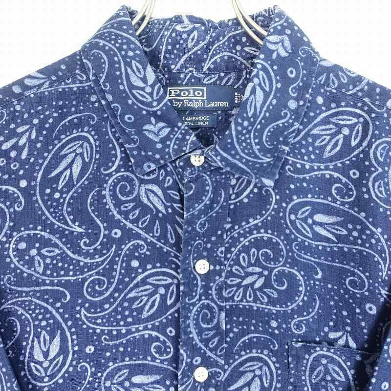 古着 RalphLauen 総柄 リネン 半袖シャツ