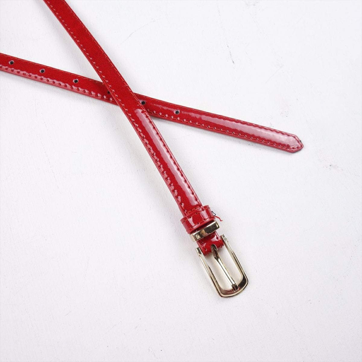 PUレザー ビビットカラー レッド 光沢 柄ベルト