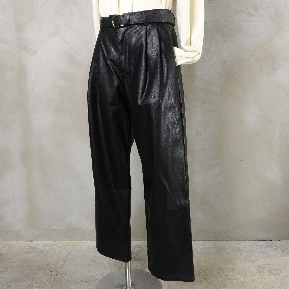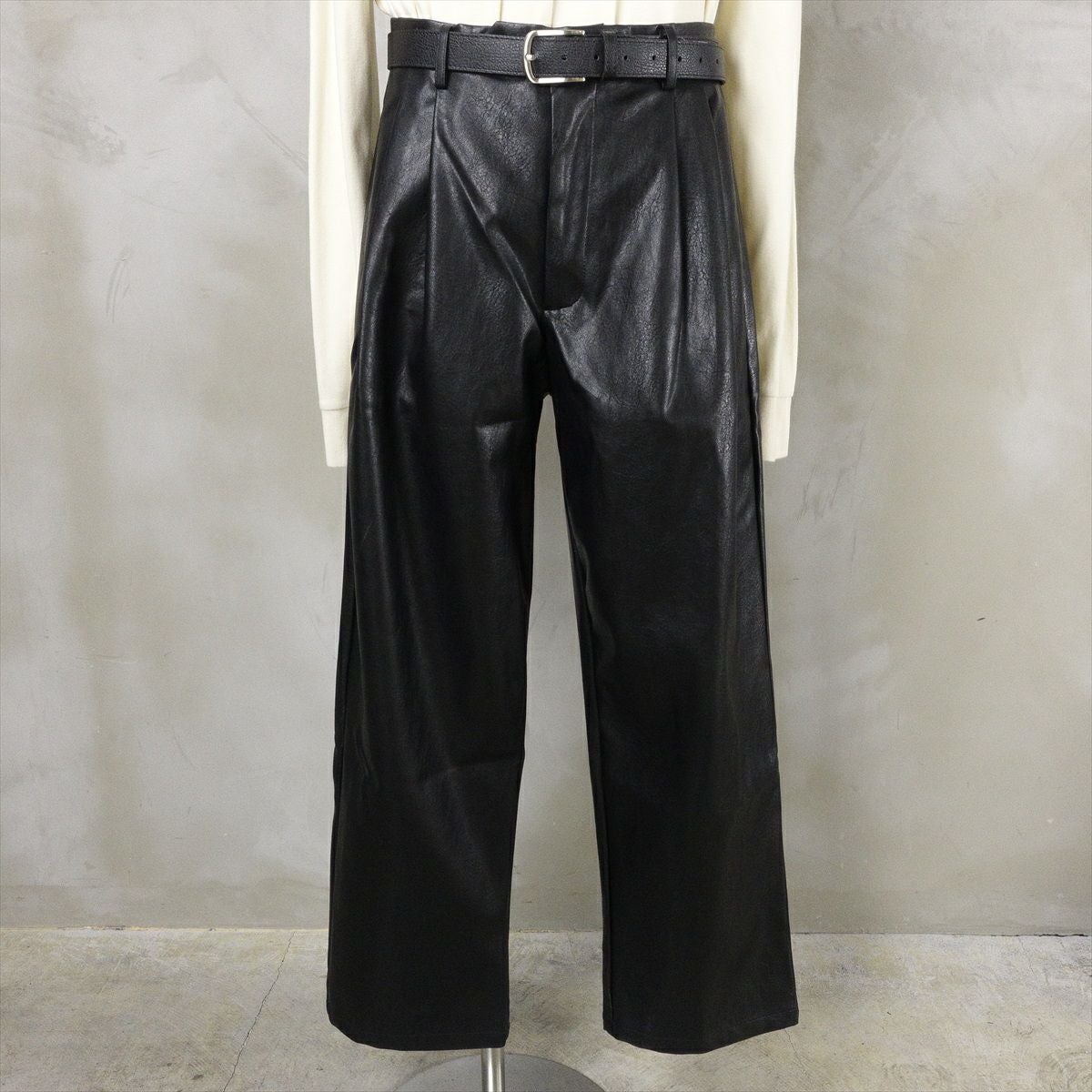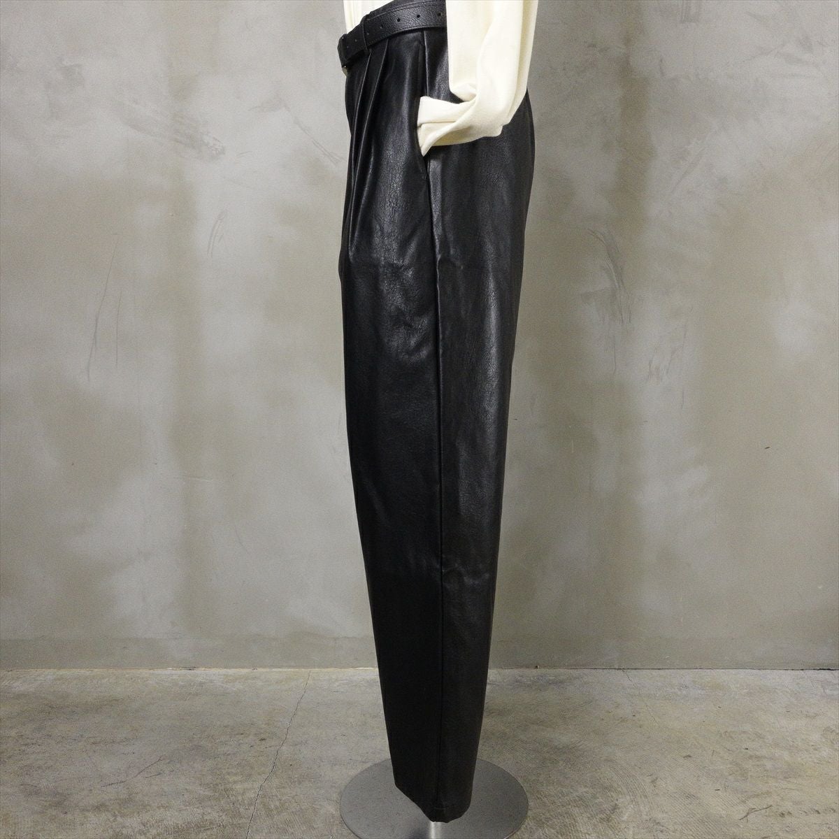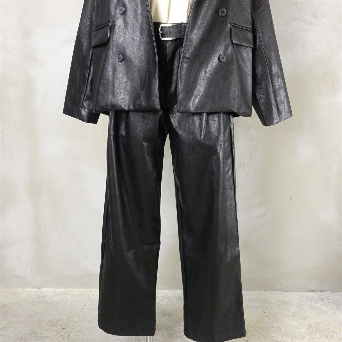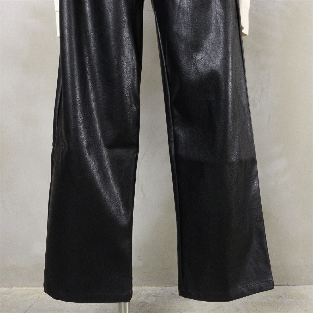 他の画像を見る Fafatt ファファット ブラックレザー スラックス 販売価格 ¥ 8,580 税込 合皮で作られたブラックレザーのスラックスです。本革ではないですが、程よいマッド感と張りのある質感がチープさを感じさせない仕上がりになっております。ウエストにはタックが2つ入っており、生地の動きが見られます。裾に向かってややテーパードがかかっており、綺麗なシルエットになっております。色がブラックなので、合わせるものを選ばず、着回しのしやすいアイテムです。レザーテーラードジャケットとセットアップ仕様になっております。 カートに入れる お気に入りに登録する