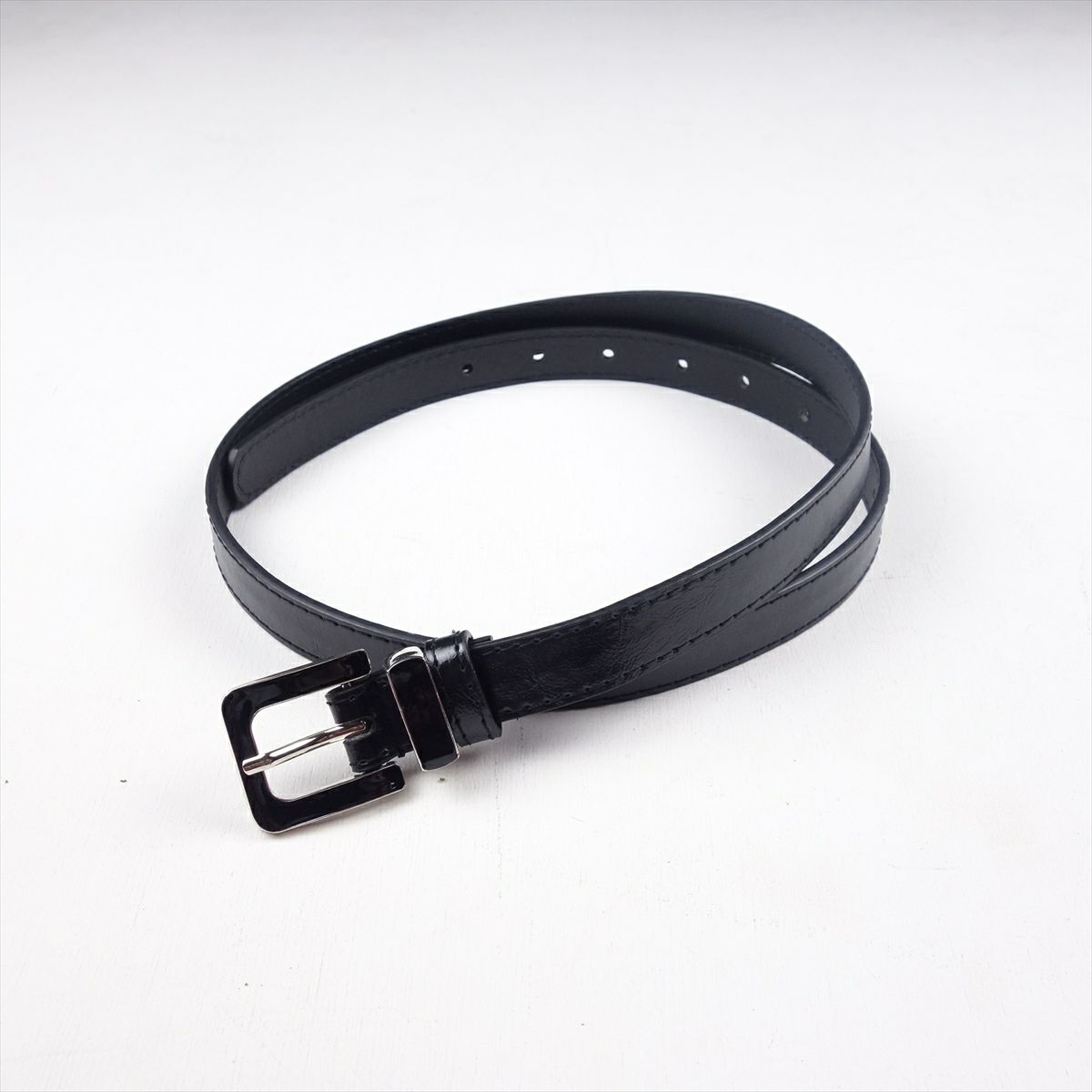 PUレザー 同系色バックル ブラック 細ベルト