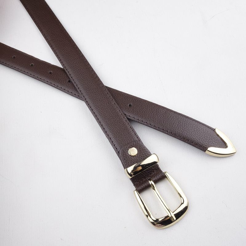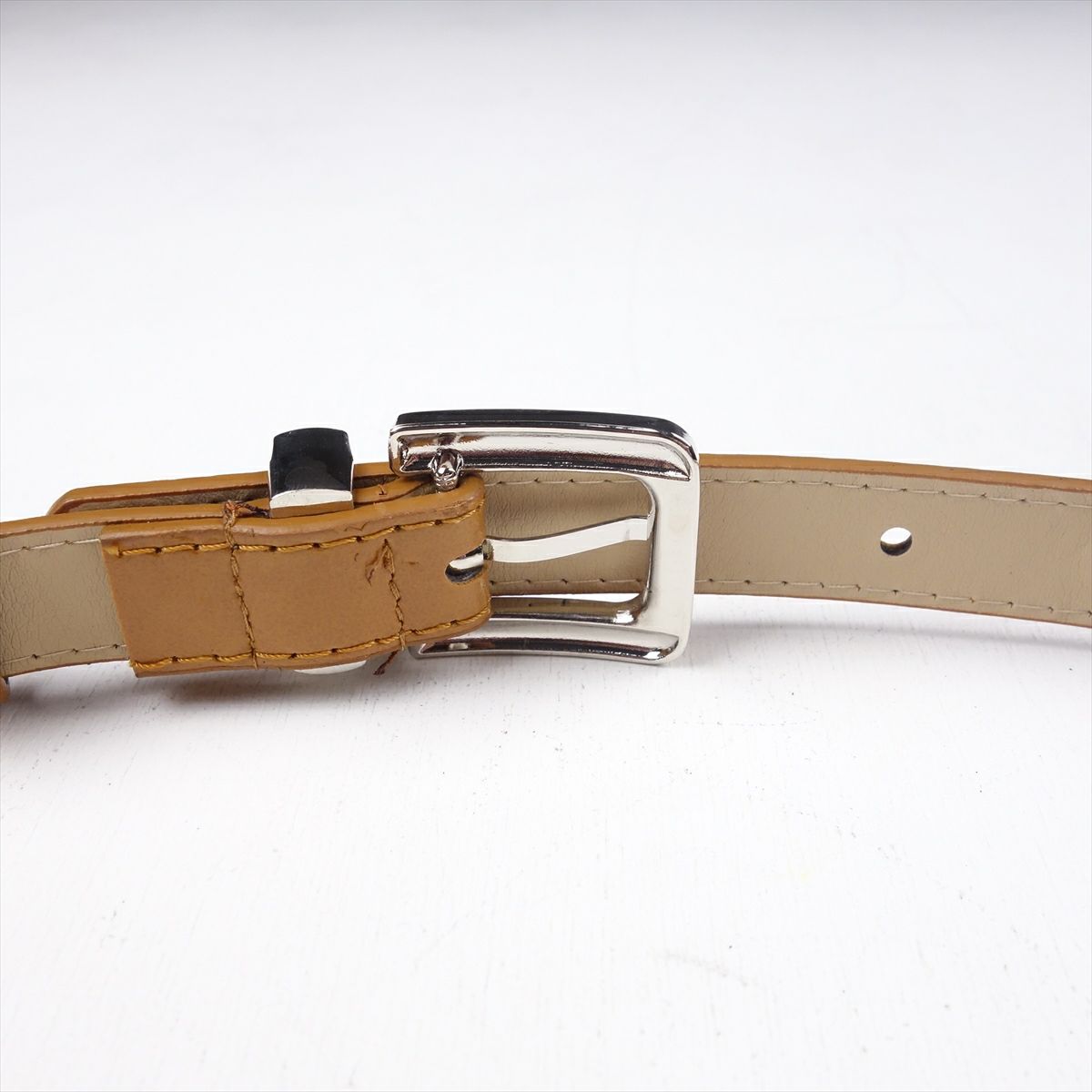 PUレザー 同系色バックル ブラウン 細ベルト