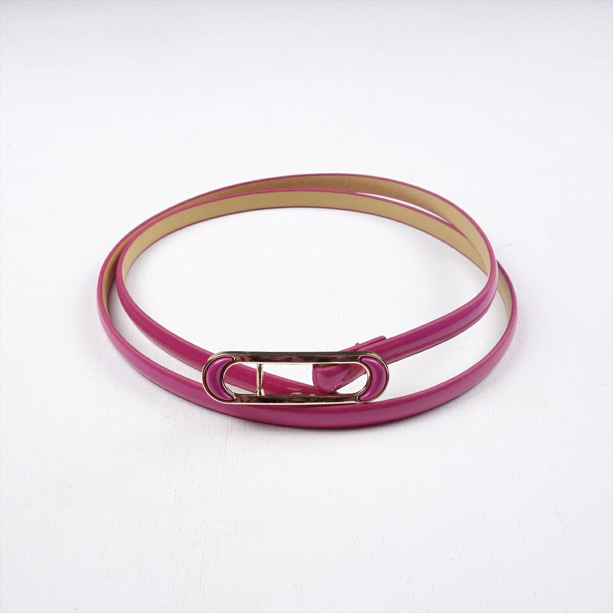 PUレザー ビビットカラー ピンク 極細ベルト
